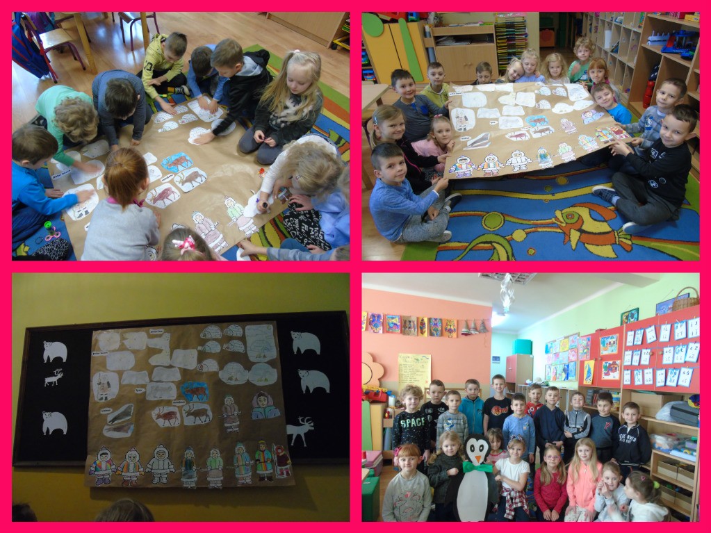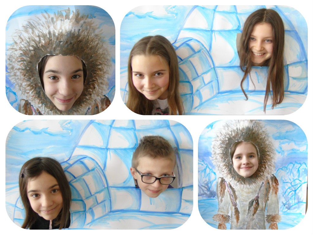 Dzieci z klasy 0 a zaangażowały się w przygotowanie plakatu na temat wioski Eskimosów, który przyozdobił gazetkę szkolną. W Dniu Eskimosów można w szkole było spotkać ciepło ubranych uczniów i zrobić sobie zdjęcie w wykonanym przez gimnazjalistkę szablonie przedstawiającym Eskimosa lub igloo.