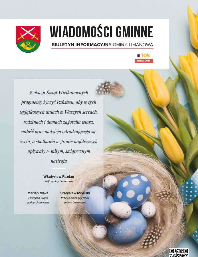 Zachęcamy Państwa do lektury nowego, świątecznego wydania bezpłatnego biuletynu informacyjnego Urzędu Gminy Limanowa "Wiadomości Gminne"  W numerze m.in. omówienie bieżących inwestycji, podsumowanie najważniejszych wydarzeń ostatnich miesięcy oraz zapowiedź czekających nas przedsięwzięć.