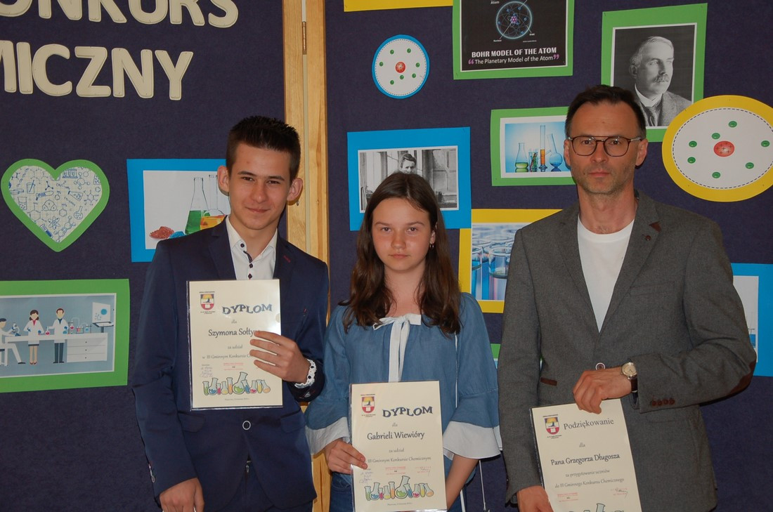 W dniu 23 kwietnia br. w Szkole Podstawowej im. ks. Józefa Górszczyka w Pisarzowej odbył się III Gminny Konkurs Chemiczny. W zmaganiach konkursowych wzięło dziewięcioro uczniów z czterech szkół: Szkoły Podstawowej nr 1 im. Jana Pawła II w Męcinie, Szkoły Podstawowej im. Stanisława Wyspiańskiego w Mordarce, Szkoły Podstawowej nr 2 im. Stanisława Konarskiego w Starej Wsi (Współorganizator Konkursu), Szkoły Podstawowej im. ks. Józefa Górszczyka w Pisarzowej (Organizator III edycji Konkursu).
