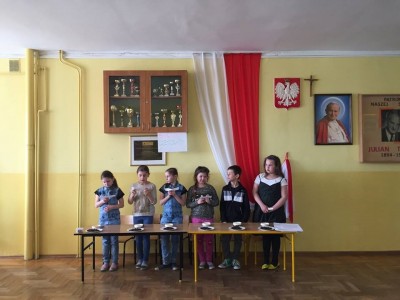 Światowego Dnia Czekolady. Podzieleni na grupy przygotowali plakat promujący obchody tego święta i ogłosili konkurs na wiersz o czekoladzie lub jej reklamę. W Dniu Czekolady - 12 kwietnia uczniowie przygotowali degustację czekolad z różnymi, często nietypowymi dodatkami takimi jak: sól morska, płatki pomarańczy, czy mięta. Każdy z uczniów i nauczycieli miał okazję wybrać czekoladę, która najbardziej mu smakowała. Zwycięzcą rankingu okazała się czekolada z karmelem i pomarańczą, a najbardziej zaskakującym smakiem wybrano tą z dodatkiem soli morskiej.