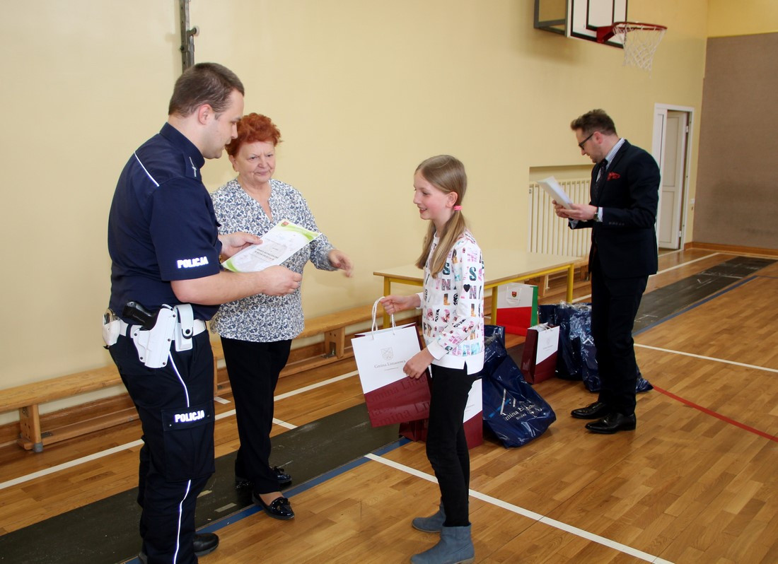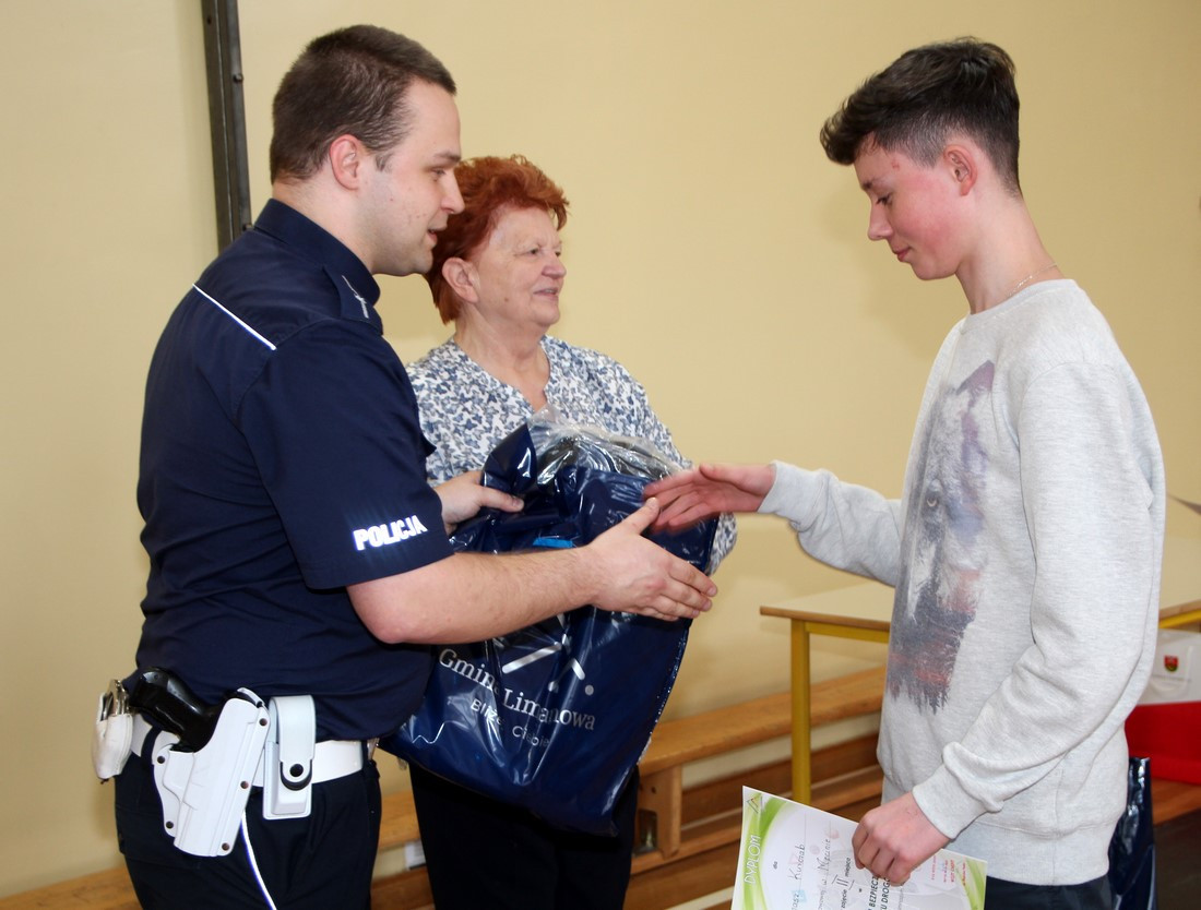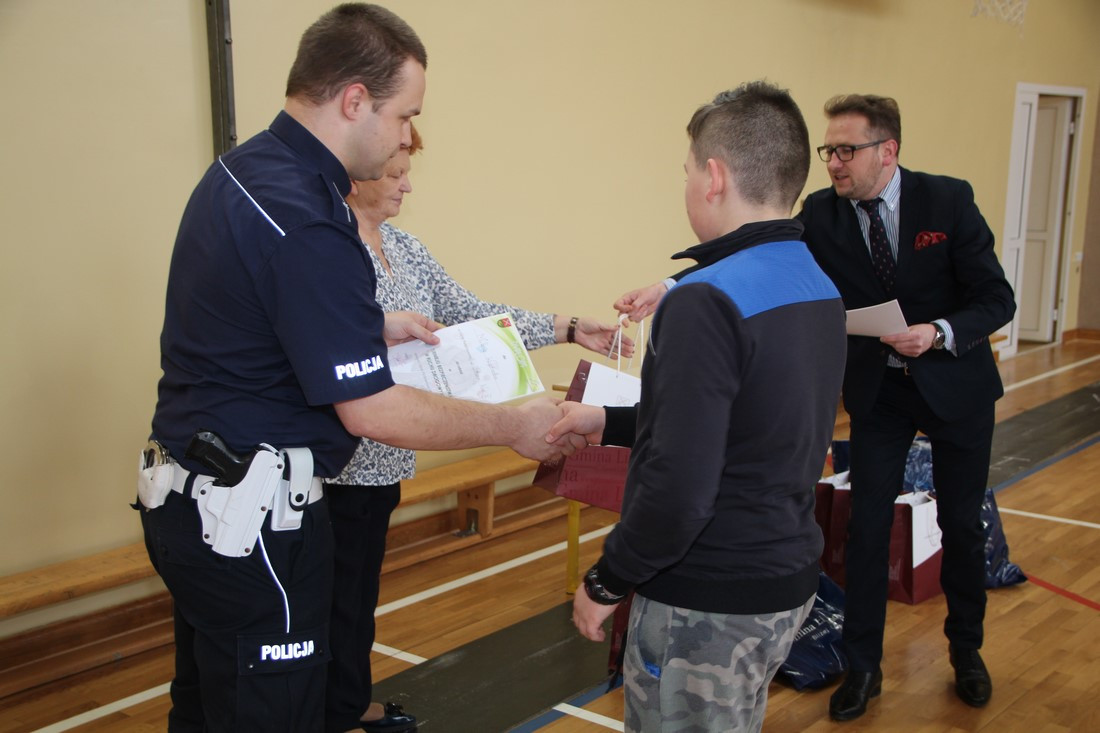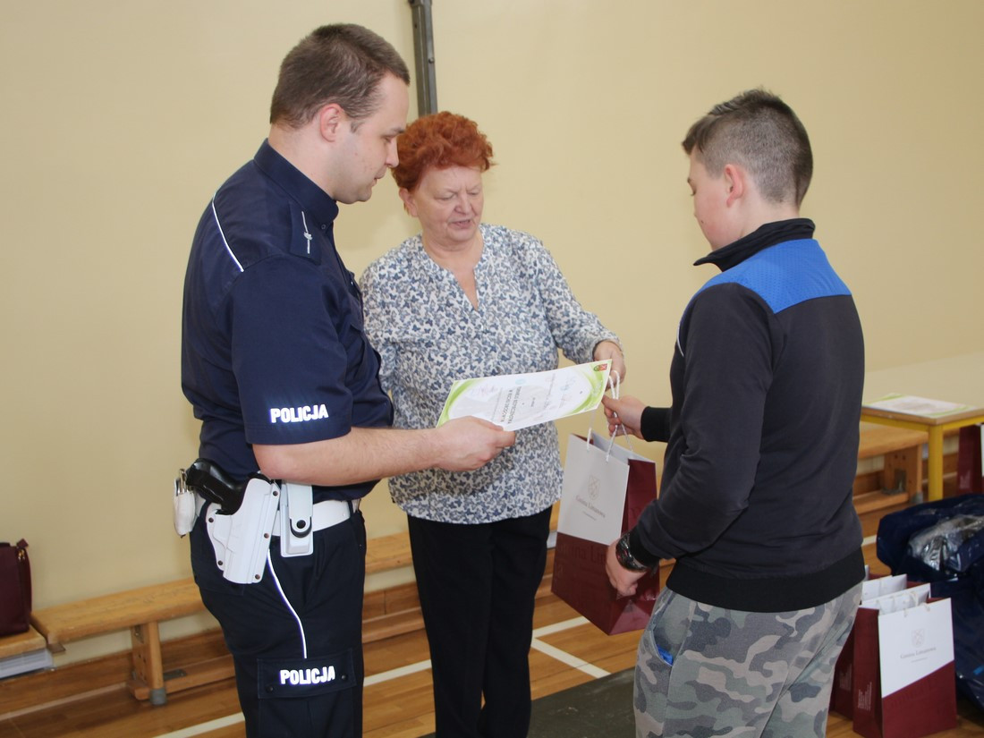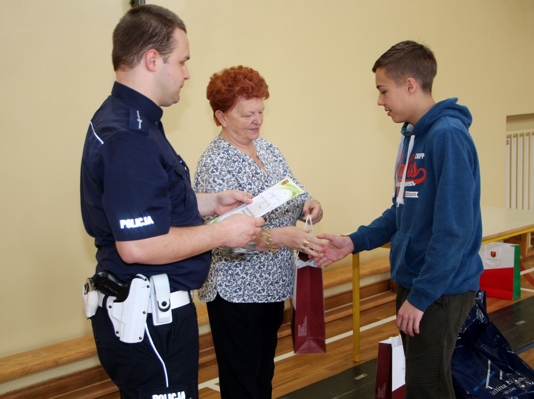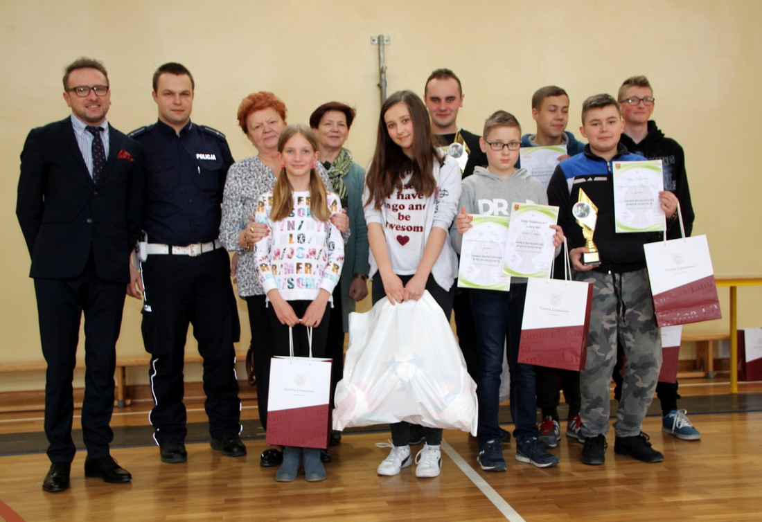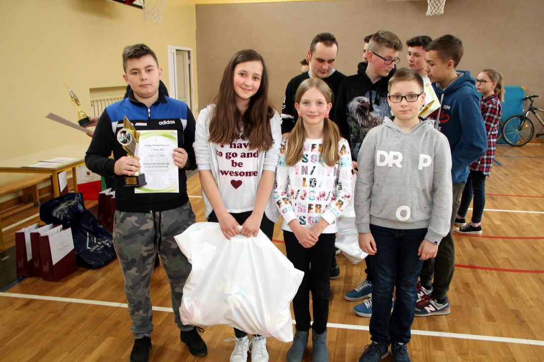 Wszyscy uczestnicy Turnieju zarówno drużynowo, jak i indywidualnie otrzymali dyplomy oraz nagrody rzeczowe ufundowane przez Urząd Gminy Limanowa. Nagrody wręczali: Kierownik Wydziału Kultury i Promocji UG Limanowa – Wojciech Korabik, Dyrektor Zespołu Szkół nr 1 w Męcinie - Maria Lupa oraz mł. asp. Maciej Bielak z KPP Limanowa.