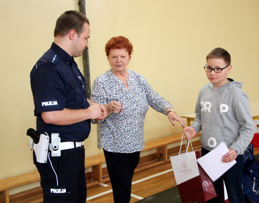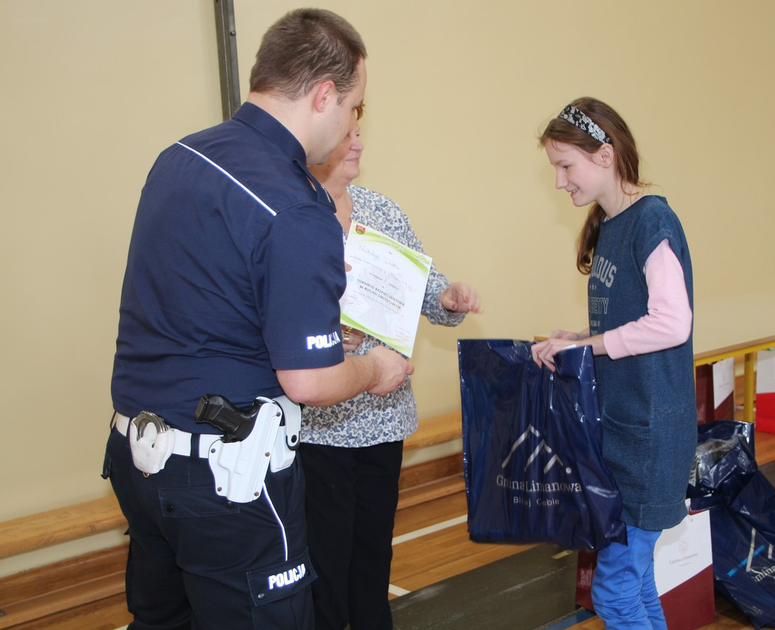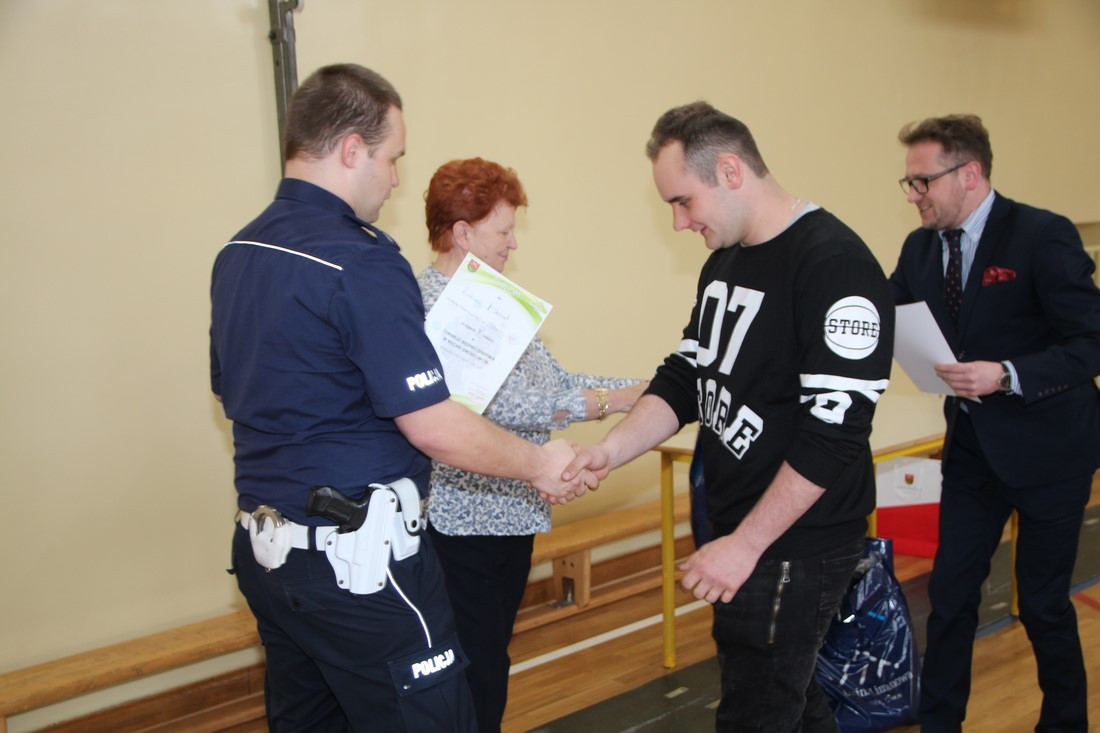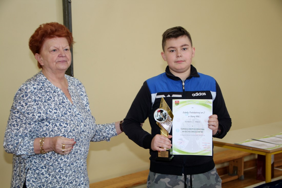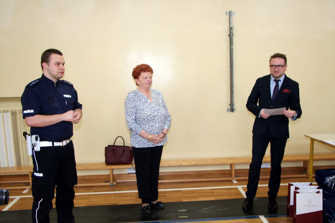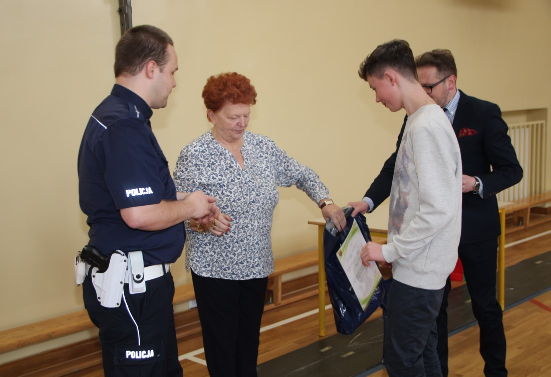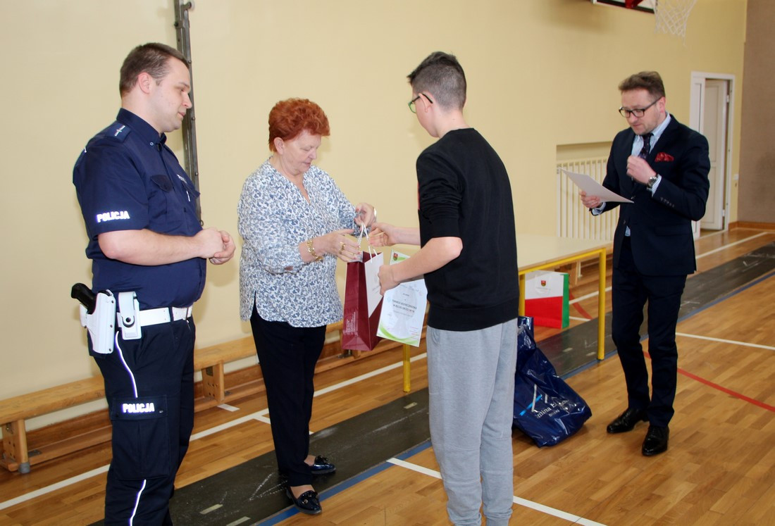 Wszyscy uczestnicy Turnieju zarówno drużynowo, jak i indywidualnie otrzymali dyplomy oraz nagrody rzeczowe ufundowane przez Urząd Gminy Limanowa. Nagrody wręczali: Kierownik Wydziału Kultury i Promocji UG Limanowa – Wojciech Korabik, Dyrektor Zespołu Szkół nr 1 w Męcinie - Maria Lupa oraz mł. asp. Maciej Bielak z KPP Limanowa.