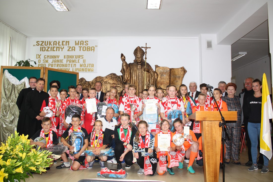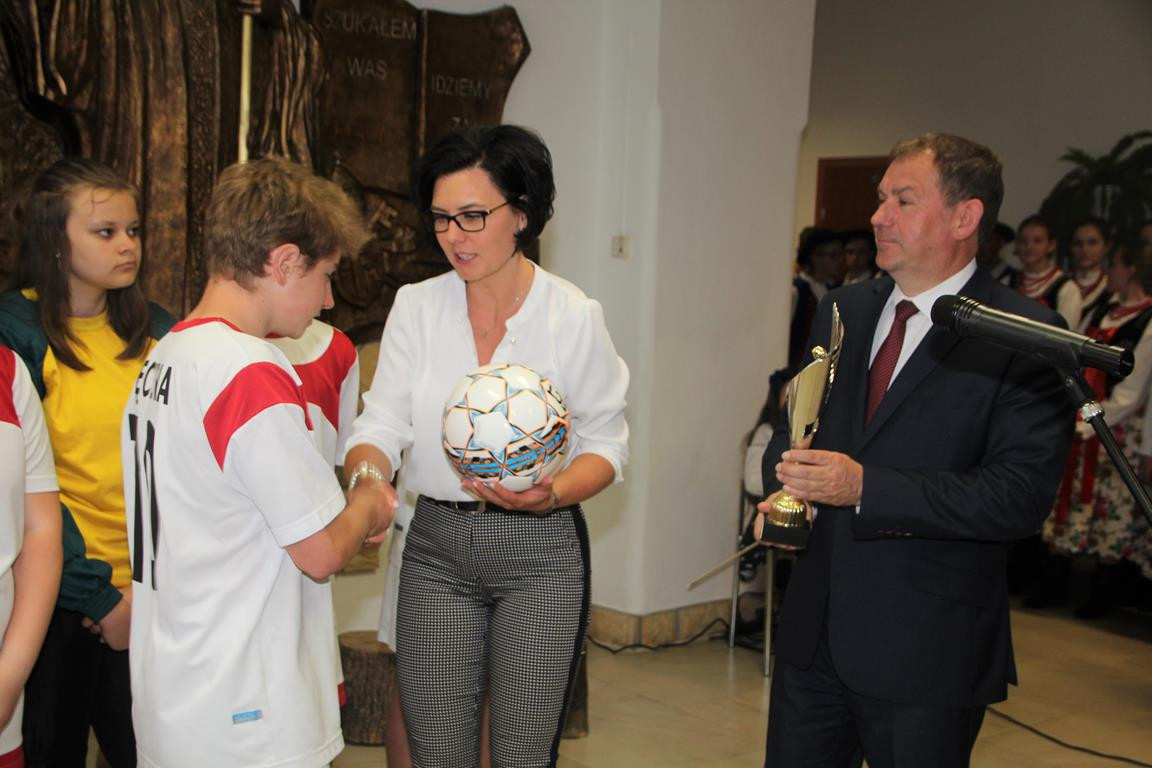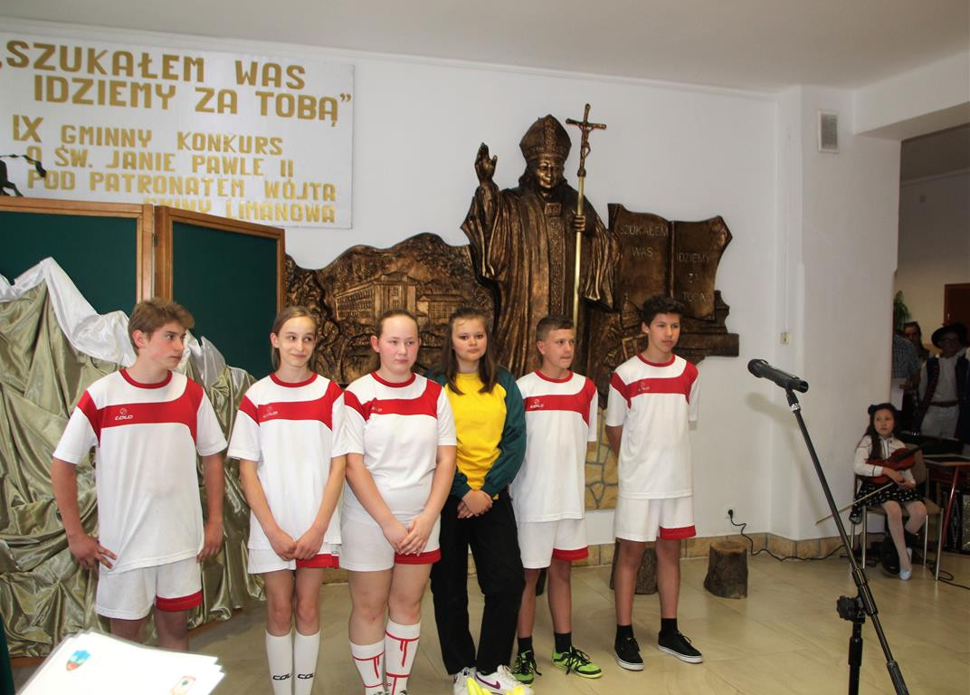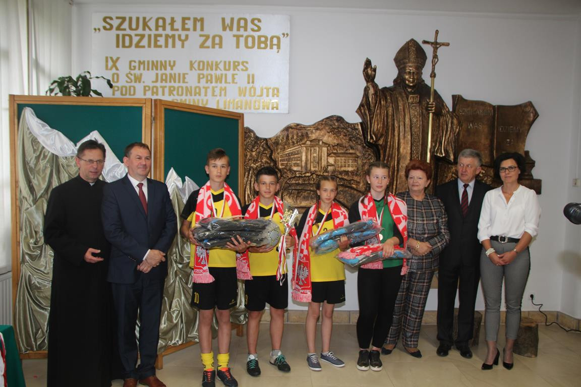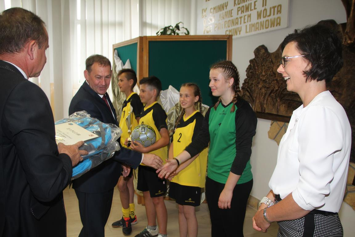 Następnym punktem obchodów były rozgrywki sportowe. W meczach piłki nożnej rywalizowały ze sobą mieszane zespoły szkół z terenu Gminy Limanowa. Po zaciętej walce zwycięstwo odniosła drużyna ze Szkoły Podstawowej w Nowym Rybiu, na II miejscu uplasowali się uczniowie reprezentujący Szkołę Podstawową w Wysokiem, natomiast III miejsce zajęli gospodarze. Po emocjach sportowych nastąpiła niemniej wyczekiwana chwila – uroczyste podsumowanie konkursu i wręczenie nagród zainaugurowane przez Dyrektor Marię Lupę z udziałem zaproszonych gości reprezentujących Urząd Gminy Limanowa w osobach: wicewójta Mariana Mąki, dyrektor GZOS Edyty Król oraz kierownika Wydziału Kultury i Promocji Wojciecha Korabika. Laureaci turnieju piłki nożnej otrzymali pamiątkowe puchary, piłki, plecaki oraz szaliki kibica.