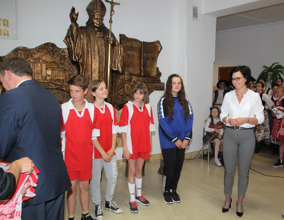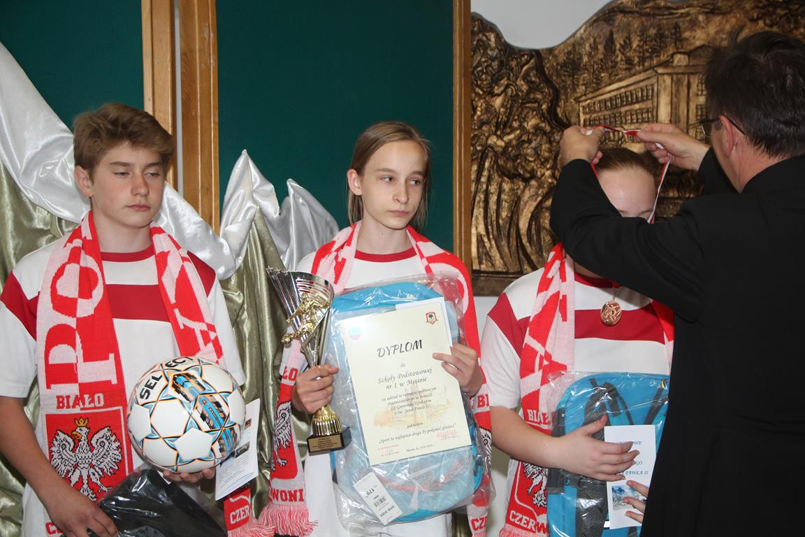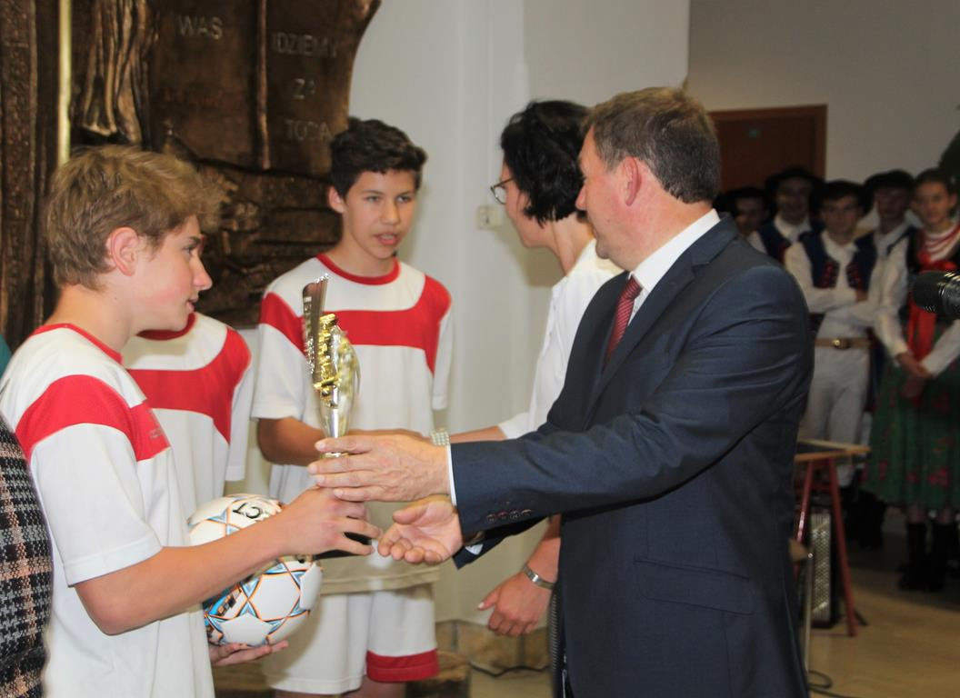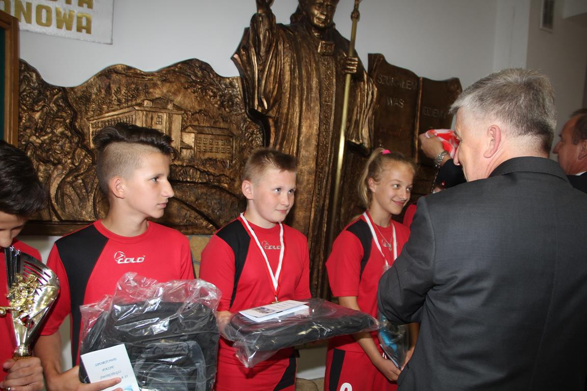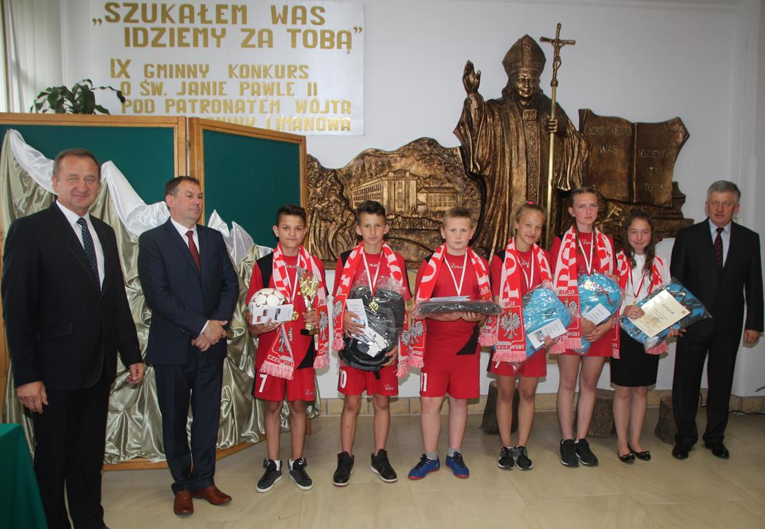 Następnym punktem obchodów były rozgrywki sportowe. W meczach piłki nożnej rywalizowały ze sobą mieszane zespoły szkół z terenu Gminy Limanowa. Po zaciętej walce zwycięstwo odniosła drużyna ze Szkoły Podstawowej w Nowym Rybiu, na II miejscu uplasowali się uczniowie reprezentujący Szkołę Podstawową w Wysokiem, natomiast III miejsce zajęli gospodarze. Po emocjach sportowych nastąpiła niemniej wyczekiwana chwila – uroczyste podsumowanie konkursu i wręczenie nagród zainaugurowane przez Dyrektor Marię Lupę z udziałem zaproszonych gości reprezentujących Urząd Gminy Limanowa w osobach: wicewójta Mariana Mąki, dyrektor GZOS Edyty Król oraz kierownika Wydziału Kultury i Promocji Wojciecha Korabika. Laureaci turnieju piłki nożnej otrzymali pamiątkowe puchary, piłki, plecaki oraz szaliki kibica.