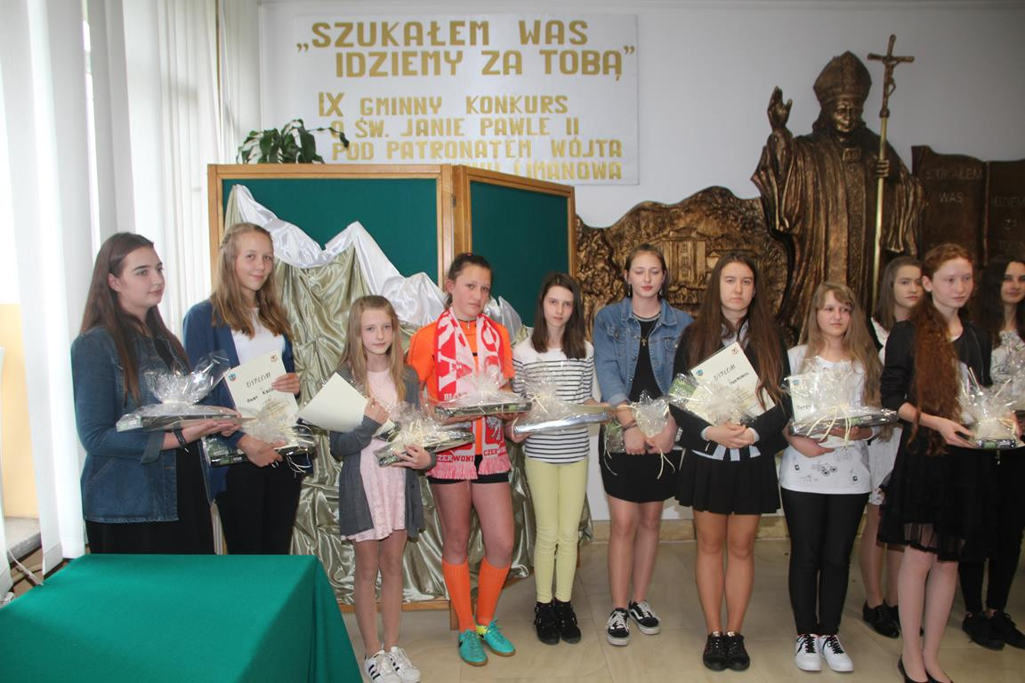 Rozstrzygnięto również konkurs plastyczny w dwóch kategoriach wiekowych. I tak: w szkole podstawowej I miejsce zajęła Amelia Kaja ze SP w Nowym Rybiu, II przyznano Agnieszce Kicie ze SP w Młynnem, zaś na miejscu III uplasowała się Małgorzata Musiał ze SP nr 2 w Starej Wsi. Natomiast w kategorii gimnazjum najlepsza okazała się Karolina Puch ze SP nr 1 w Męcinie, II miejsce zajęła Patrycja Trojanowska ze SP nr 1 w Starej Wsi, zaś III przypadło Natalii Odziomek ze SP w Mordarce. Zarówno laureaci, jak i pozostali uczestnicy konkursu otrzymali zestaw akcesoriów malarskich. Wszystkie nagrody zostały ufundowane przez Urząd Gminy Limanowa, Przewodniczącą Sejmiku Województwa Małopolskiego Urszulę Nowogórską oraz sponsorów.