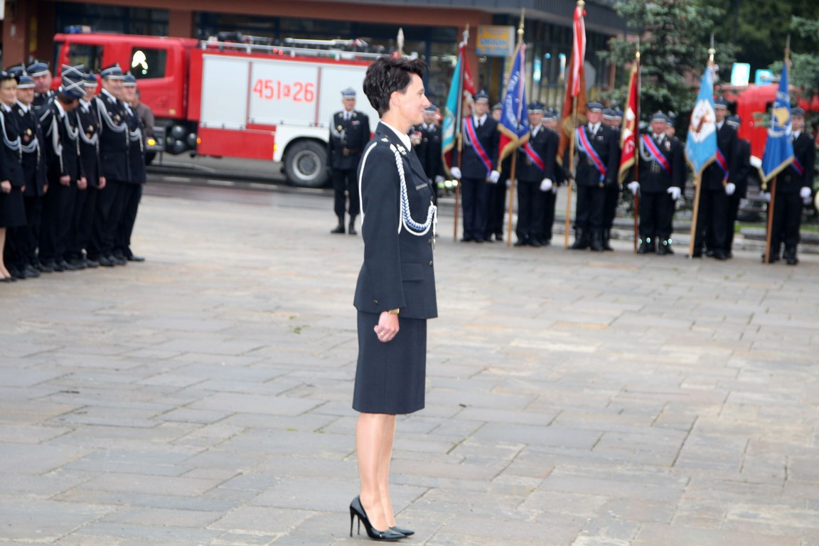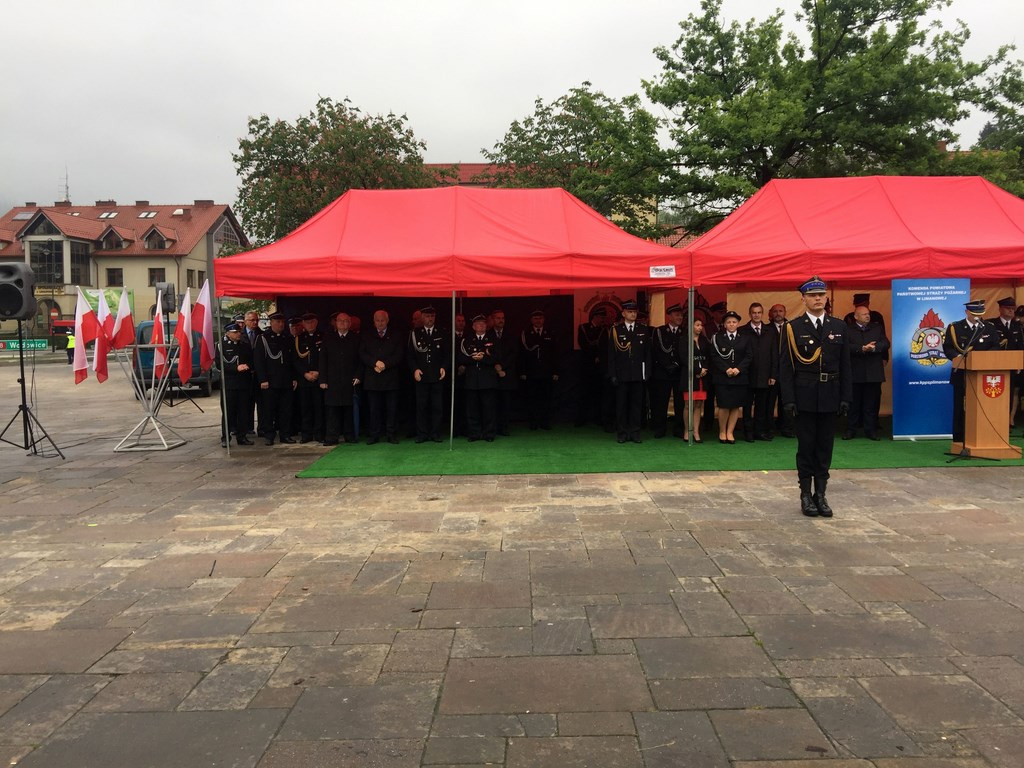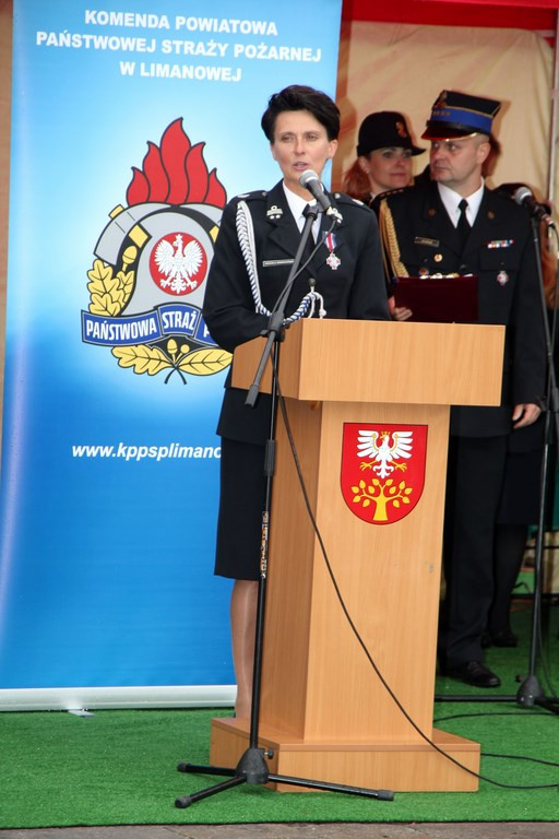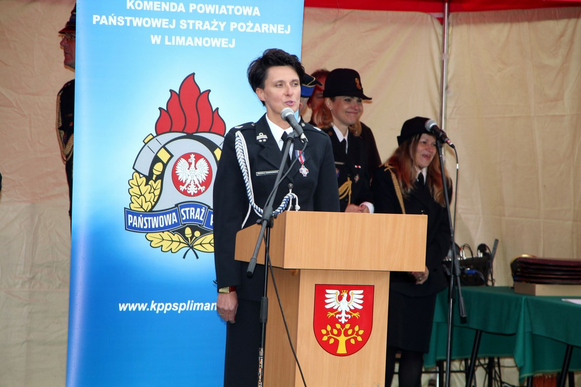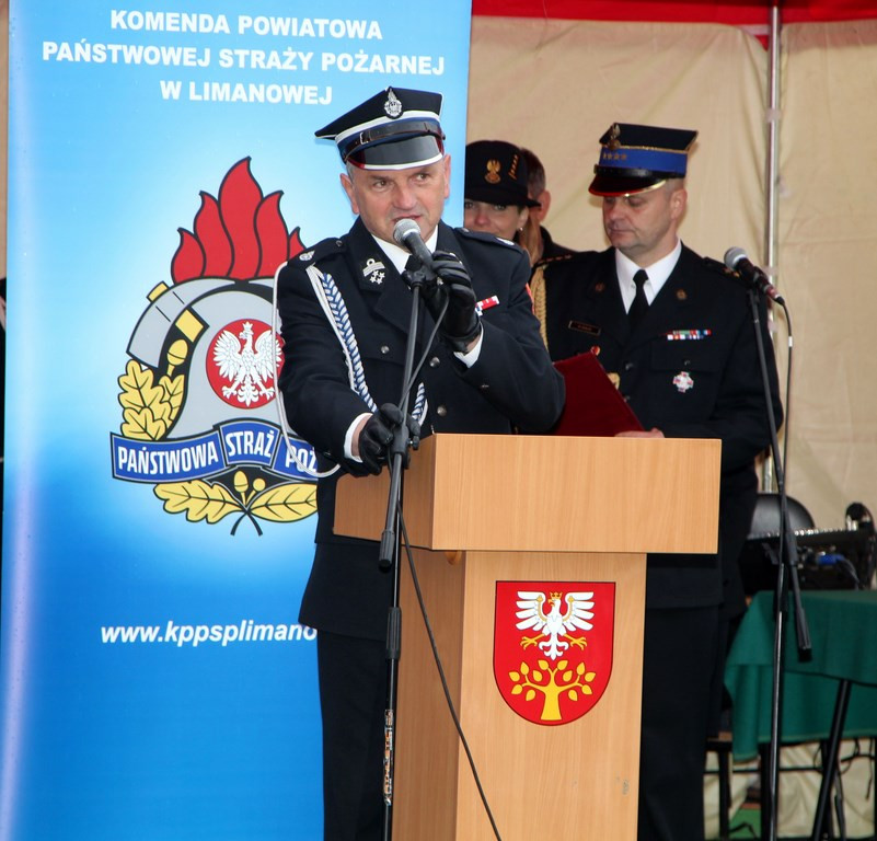 Po przeglądzie pododdziałów bryg. Tomasz Pawlik, pełniący obowiązki Komendanta Powiatowego Państwowej Straży Pożarnej w Limanowej przywitał przedstawicieli władz wojewódzkich, powiatowych oraz lokalnych samorządów.