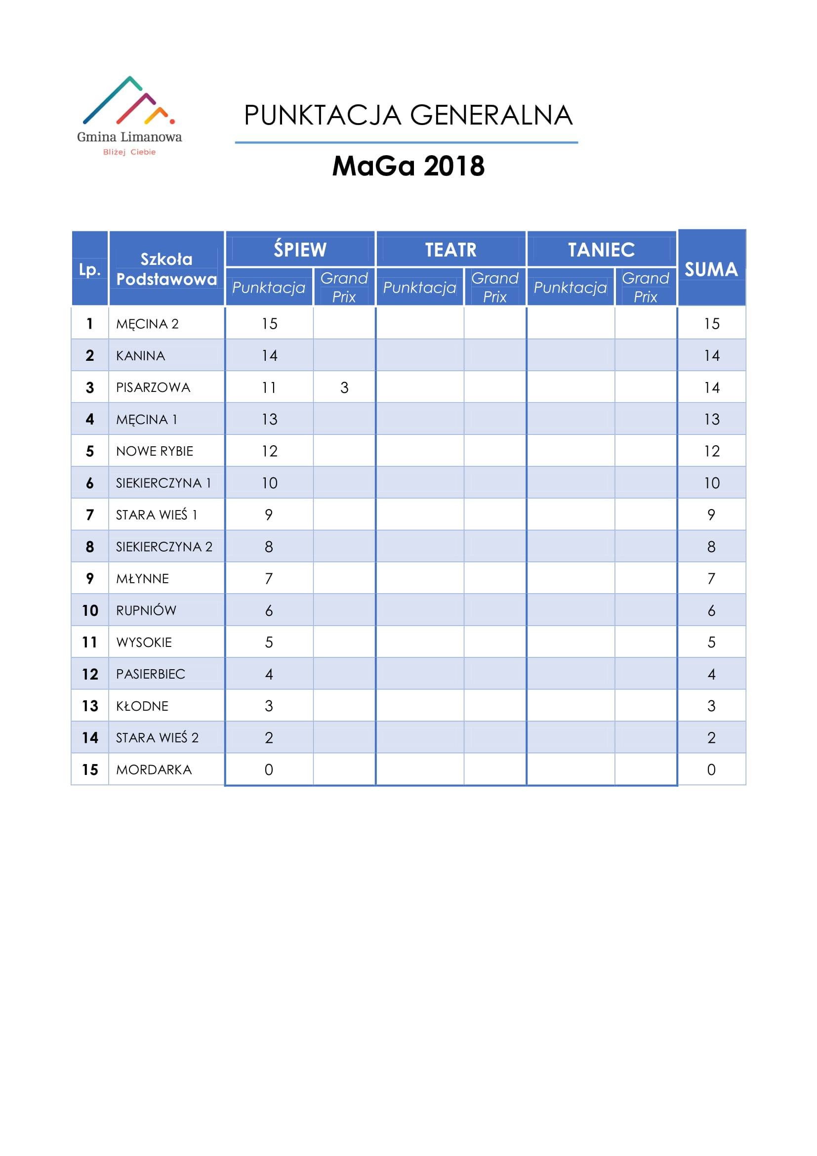 A tak po konkursie śpiewu prezentuje się tabela generalna.
