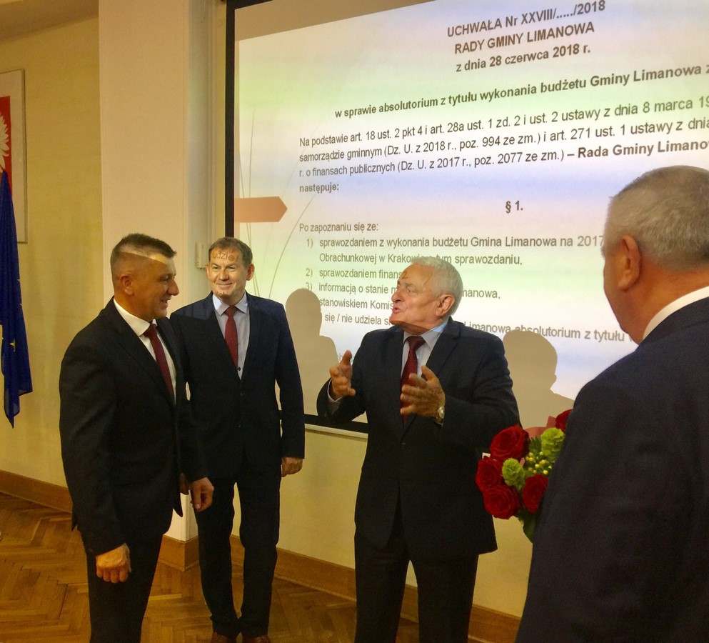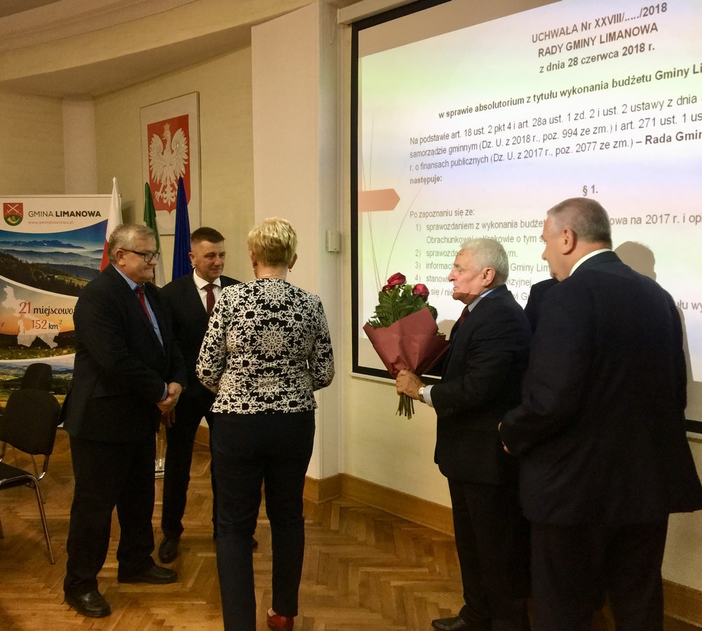 W dniu 28 czerwca 2018 r. w sali konferencyjnej Urzędu Gminy Limanowa odbyła się XXVIII sesja Rady Gminy Limanowa, podczas której radni gminy przyjęli sprawozdanie z wykonania ubiegłorocznego budżetu gminy i jednogłośnie poparli uchwałę w sprawie udzielenia absolutorium Wójtowi Gminy Limanowa.
