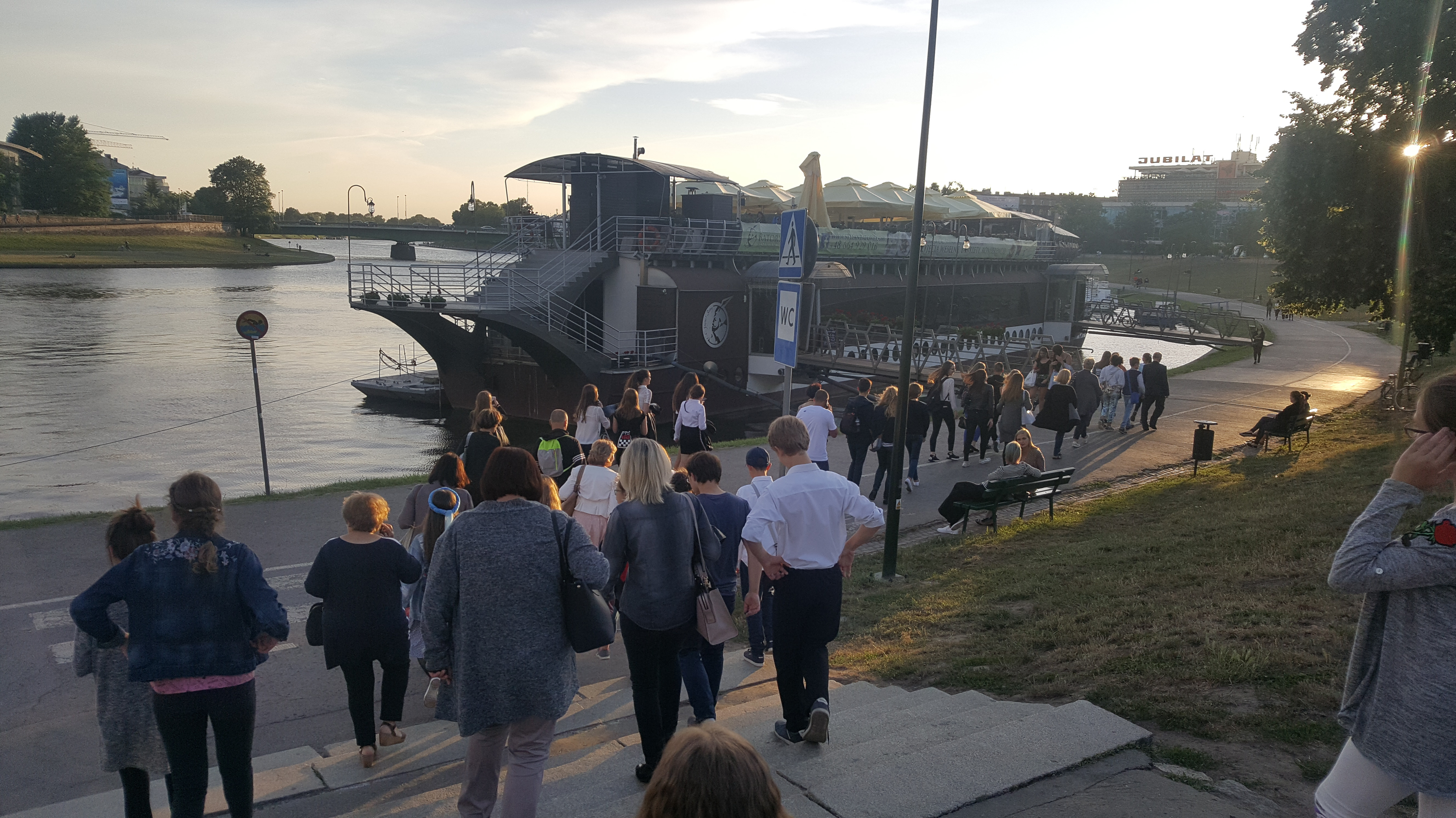 Podczas kolejnej atrakcji uczniowie mogli zwiedzić Kraków o zachodzie słońca, płynąc statkiem po Wiśle i słuchając opowieści przewodnika. W kolejnym dniu pobytu w Krakowie tj. 7 czerwca uczestnicy Zjazdu Rodzin Szkół Jadwiżańskich wzięli udział w uroczystej Mszy Świętej pod przewodnictwem ks. bpa Damiana Muskusa koncelebrowanej przed ołtarzem głównym Katedry Wawelskiej. W homilii wygłoszonej podczas uroczystej Mszy św. z udziałem szkół Świętej Jadwigi bp Muskus wskazywał, że Wawelska Królowa jest aktualnym wzorem umiłowania ojczyzny, szacunku dla nauki i edukacji oraz wrażliwości na los potrzebujących. Podkreślał, że cechy te winny być przykładem dla rządzących i dla całego społeczeństwa, zwłaszcza w kontekście jubileuszu 100-lecia odzyskania niepodległości przez Polskę.