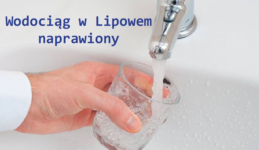 Informujemy, że awaria wodociągu w Lipowem została naprawiona, a mieszkańcy  podpięci do w/w wodociągu mają już dostęp do wody.