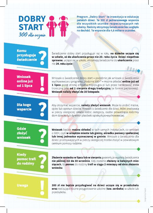 Szczegółowe informacje na temat świadczenia dobry start można znaleźć na stronie
