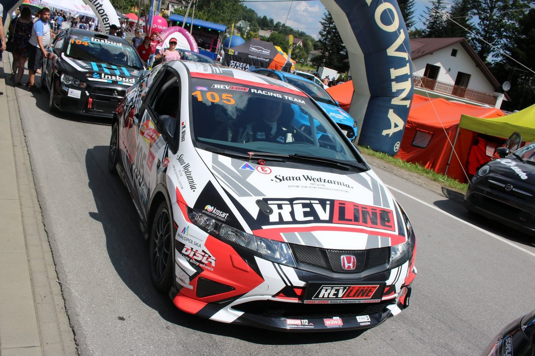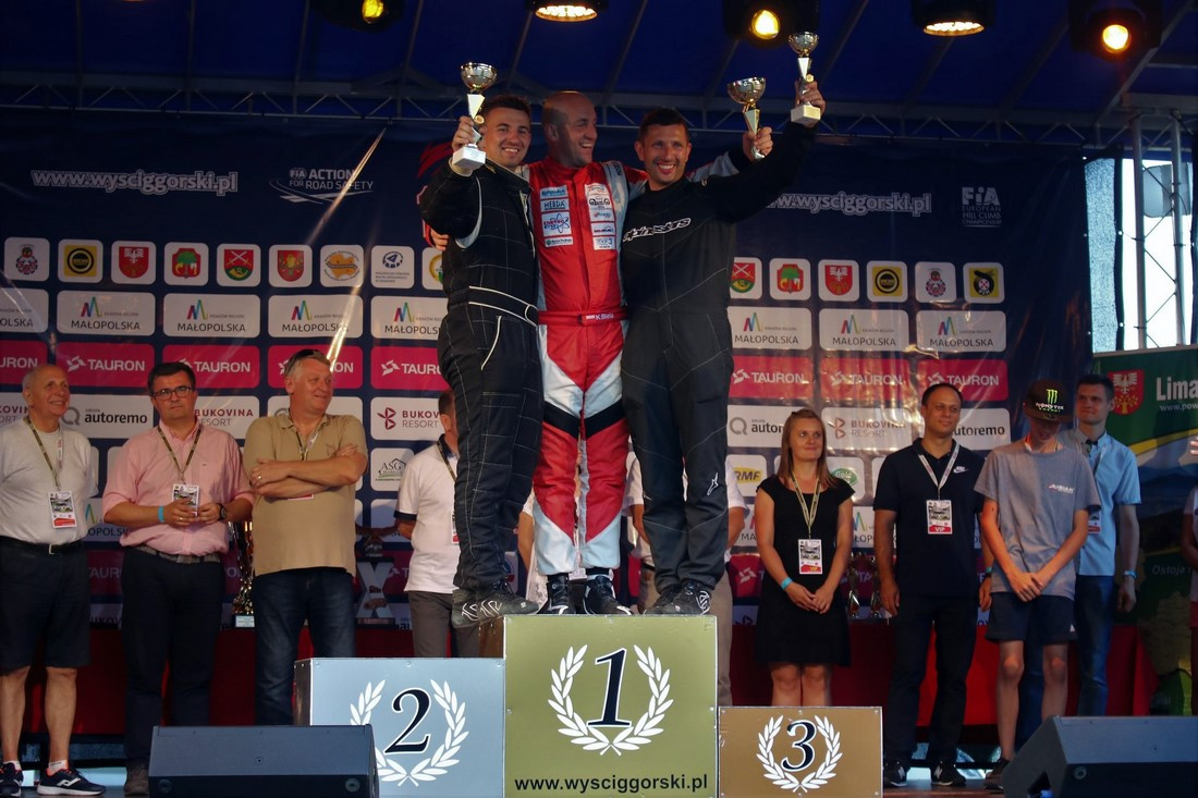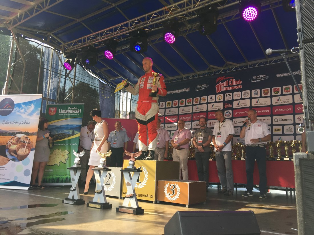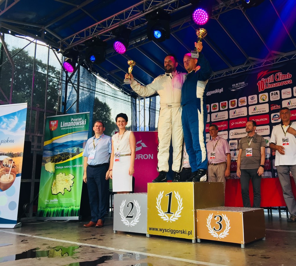 Wyjątkowy upał towarzyszył zmaganiom 104 kierowców, którzy pojawili się na starcie 5 Rundy Górskich Samochodowych Mistrzostw Polski – 10 Wyścigu Górskiego Limanowa – Przełęcz pod Ostrą. Dla kierowców klasyfikowanych w 9 Rundzie FIA EHC ( Mistrzostwa Europy FIA w Wyścigach Górskich) sobotnie podjazdy miały charakter treningowy. I właśnie lider klasyfikacji FIA EHC w kategorii 2 (competition) Christian Merli (ITA) był najszybszym zawodnikiem przedpołudniowych treningów, wyprzedzając Guya Demutha (LUX) i trzeciego w drugim podjeździe Fausto Bormoliniego (ITA). W pierwszym podjeździe treningowym FIA EHC trzeci był Szymon Łukaszczyk (POL), kierowca z Zakopanego, który w tym sezonie debiutuje w wyścigach górskich. W podjazdach treningowych GSMP za Łukaszczykiem w czołówce dojeżdżali DUBAI, dawno nie oglądany na trasach wyścigów górskich Andrzej Szepieniec i Michał Ratajczyk. W czasie tego podjazdu na trasie wywieszono czerwoną flagę po awarii Waldemara Kluzy, walczącego o utrzymanie prymatu w klasyfikacji generalnej GSMP. Skoda Fabia S 2000 zgasła na trasie, na szczęście awarię udało się usunąć. Pierwszy podjazd wyścigowy 5 Rundy Górskch Samochodowych Mistrzostw Polski odbył się bez dłuższych przerw, kilkakrotnie utylizowano rozlany na trasie olej z uszkodzonych silników. Na starcie zabrakło DUBAIA, którego wyeliminowała z wali awaria techniczna.