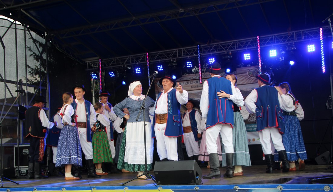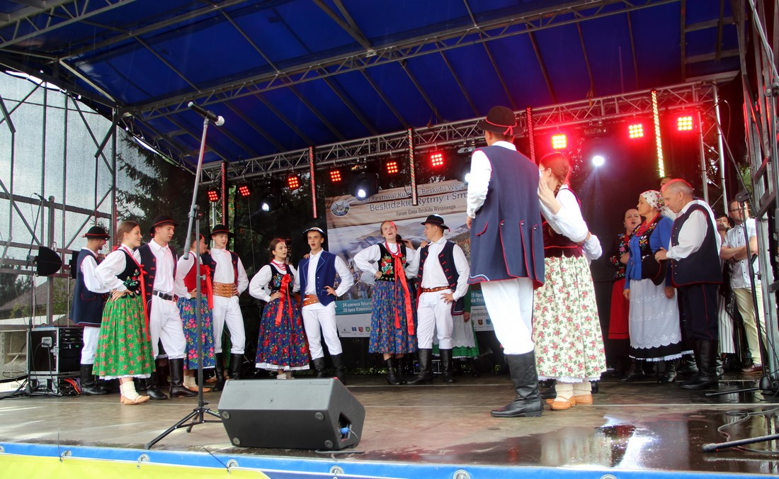 Po oficjalnych wystąpieniach, przyszedł czas na prezentacje artystyczne. Jako pierwsi na scenie pojawili się muzycy i tancerze z Zespołu Regionalnego „KIJOM WORCI” z Pisarzowej. Ich żywiołowy śpiew, muzyka i taniec skutecznie przegoniły deszczowe chmury, które towarzyszyły początkom wspólnej zabawy.