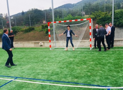 Podobną inwestycję wykonano także przy Szkole Podstawowej w Kłodnem, gdzie powstałe nowe boisko także zostało wyposażone, utwardzone zostały pobocza drogi obok szkoły, powiększono plac znajdujący sie przy budynku szkoły, a na miejscu wykonano również ogrodzenie.
