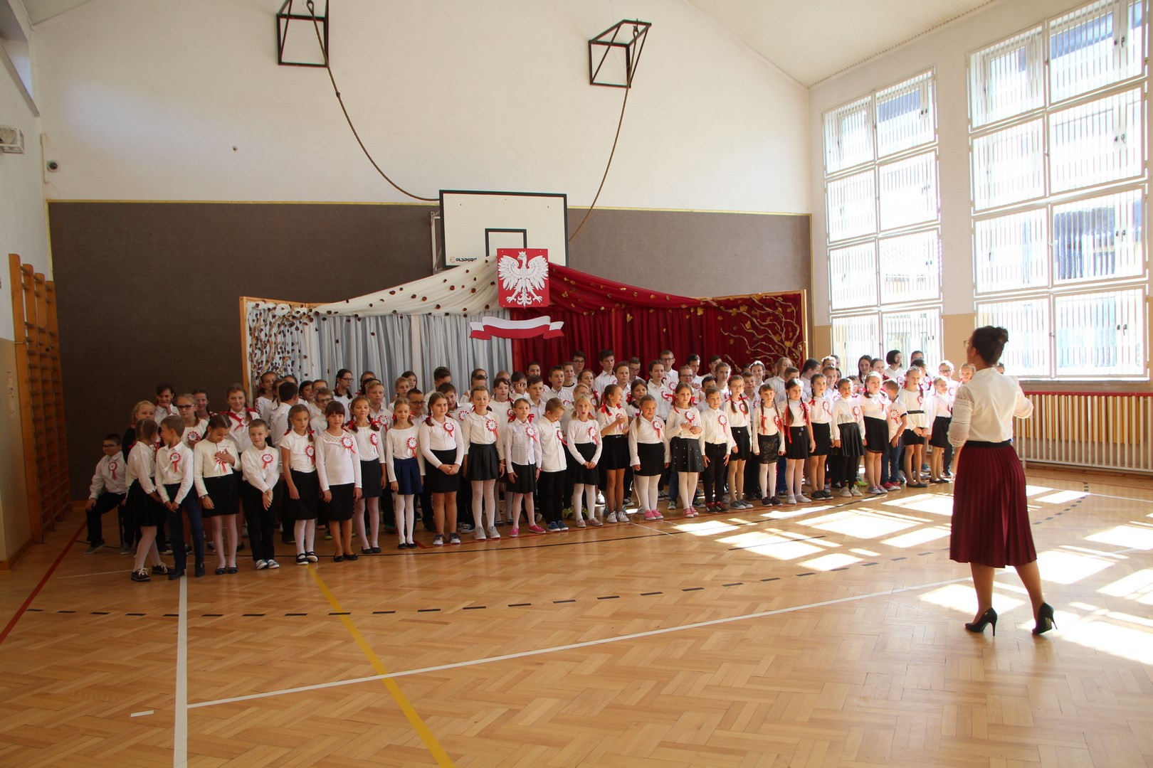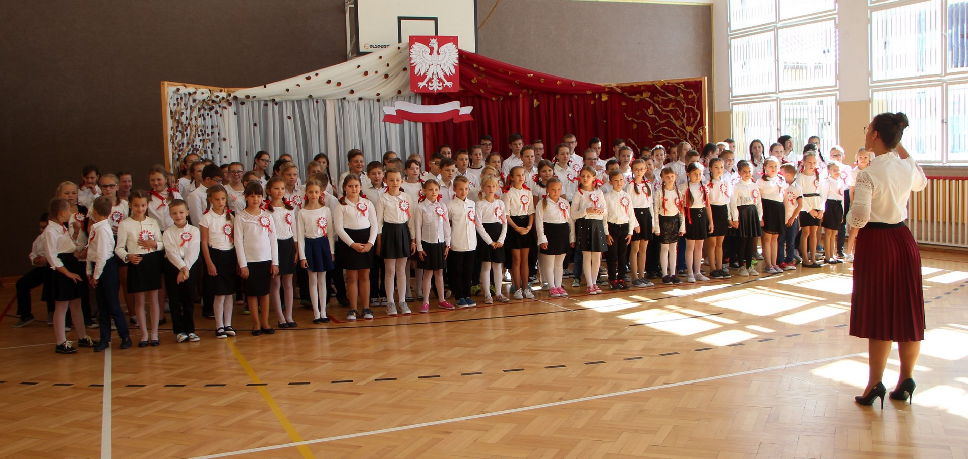 Zadanie konkursowe polegało na grupowym wykonaniu a cappella, przez co najmniej 50% wszystkich uczniów szkoły, hymnu państwowego oraz dwóch polskich pieśni hymnicznych wybranych spośród podanego w regulaminie repertuaru. Uczniowie z Pisarzowej oprócz „Mazurka Dąbrowskiego” wykonali dwie najtrudniejsze pieśni: „Bogurodzicę” i „Gaude Mater Polonia”. Do występu przygotowywali się pod czujnym okiem wychowawców i polonistów nadzorujących opanowanie pamięciowe trudnych tekstów, nauczycielki muzyki Marzeny Kasprzyk- Dudek, która zapoznawała uczniów z linią melodyczną utworów, a przede wszystkim pod fachowym okiem dyrygenta chóru – Marii Wrony. Oprawę plastyczną występu przygotowała Marta Sobczak-Piętoń, a rodzice zadbali o wykonanie kotylionów w barwach narodowych.