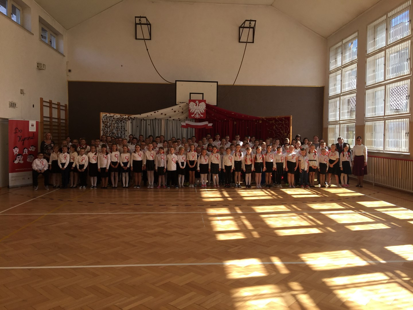 Uczucia miłości i przywiązania do kraju rodzinnego oraz dumy z przynależności do własnego narodu uczą się dzieci od najmłodszych lat. W kształtowaniu postaw patriotycznych pomagają pieśni związane z historią Polski. Dnia 26 września o godzinie 12.00 104 uczniów Szkoły Podstawowej im. ks. Józefa Górszczyka w Pisarzowej wzięło udział w przesłuchaniu do ogólnopolskiego konkursu dla szkół podstawowych „Do Hymnu”, organizowanego przez Narodowe Centrum Kultury w 100. rocznicę odzyskania przez Polskę niepodległości.