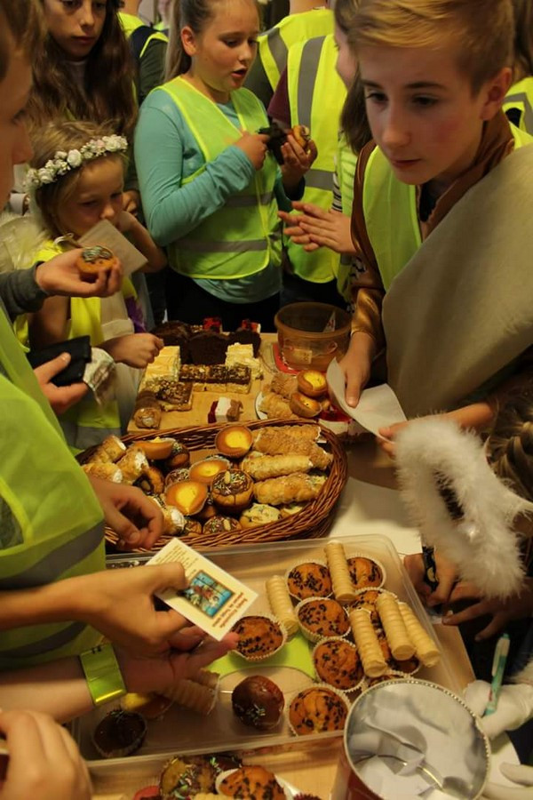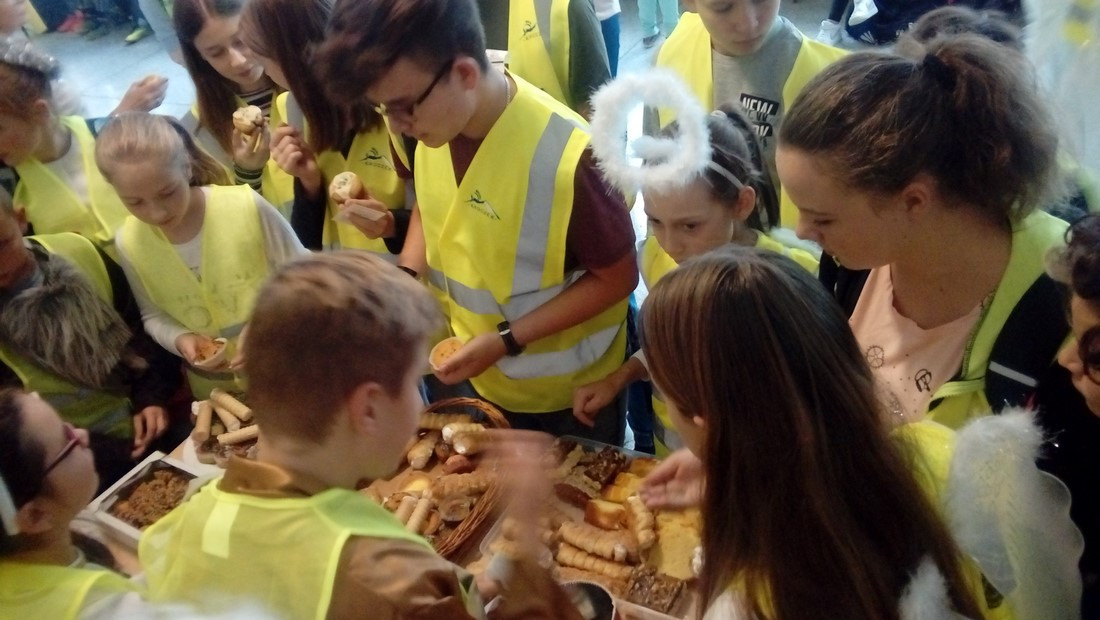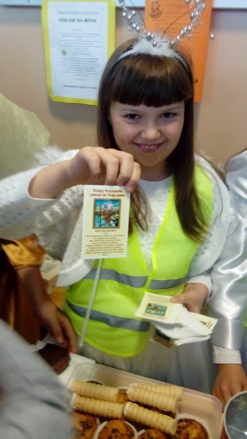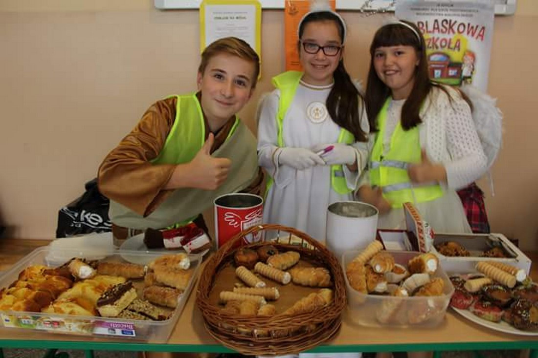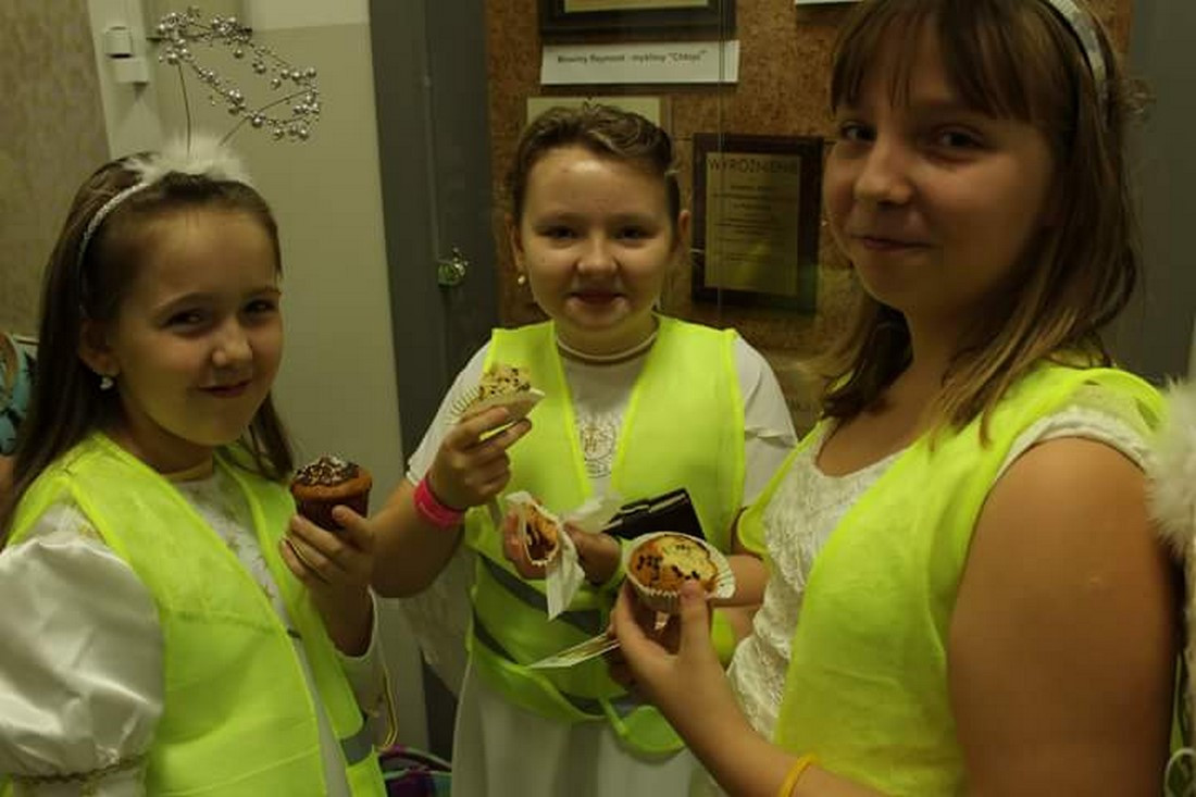 Następnie odbyło się losowanie nagród wśród osób, które zakupiły ciasto. W loterii Szkolnego Koła Caritas można było wygrać m.in. figurki aniołów, obraz z wizerunkiem Anioła Stróża oraz kalendarz.