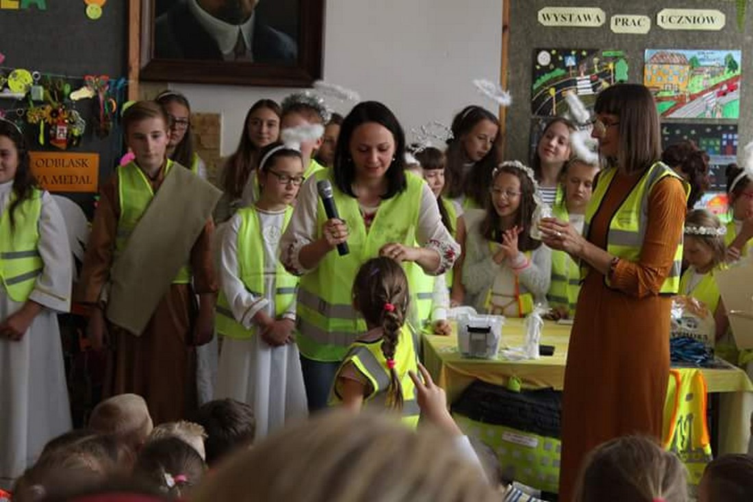 „Bezpieczny i słodki dzień…” okazał się bardzo udaną szkolną akcją. Dzięki tak licznej obecności na szkolnych korytarzach „Aniołów Stróżów” oraz „Świętych Krzysztofów” ubranych w odblaskowe kamizelki, wszyscy uświadomiliśmy sobie, jak ważne jest noszenie odblasków oraz przestrzeganie zasad bezpieczeństwa podczas podróży.