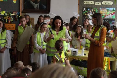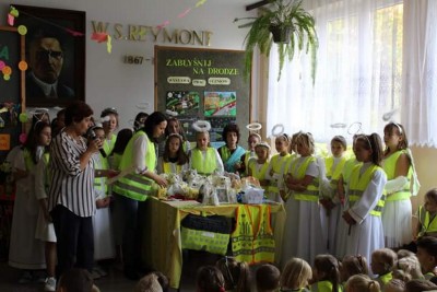 Już od rana „Święty Krzysztof” wraz z ubranymi w odblaskowe kamizelki „Aniołami – asystentami” sprzedawali domowe ciasta i ciasteczka. Każdy, kto zakupił smakołyk otrzymał pamiątkowy obrazek z wizerunkiem św. Krzysztofa – patrona kierowców i podróżujących. Najważniejszym wydarzeniem dnia był „Odblaskowy apel”, podczas którego dokonano uroczystego podsumowania szkolnego konkursu plastycznego pn. „Odblask na medal”. Zadanie konkursowe polegało na wykonaniu przestrzennego odblasku według własnego projektu. Jury w ocenie prac brało pod uwagę oryginalność pomysłu, estetykę wykonania oraz odblaskową kolorystykę pracy. W konkurs bardzo aktywnie zaangażowali się zarówno uczniowie oddziałów przedszkolnych, szkoły podstawowej jak i gimnazjum. Laureaci konkursu otrzymali medale, dyplomy oraz nagrody rzeczowe. Każdy uczestnik konkursu obdarowany został pamiątkowym upominkiem i słodyczami.