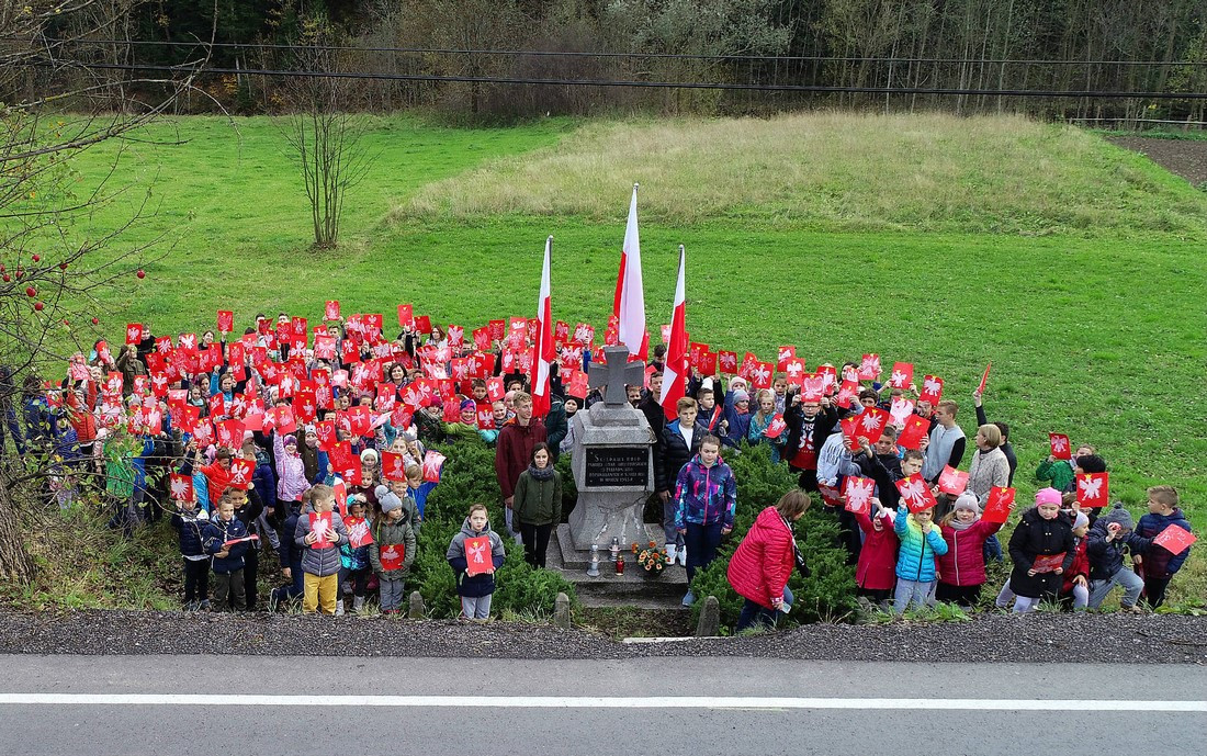 Śpiewając patriotyczne pieśni, dotarli pod pomnik poświęcony ofiarom drugiej wojny światowej. To miejsce dobitnie przypomina nam, że wolność, z której tak bardzo się dzisiaj radujemy, okupiona została najwyższą ofiarą. Minutą ciszy uczczono pamięć o polskich bohaterach. Odmówiono także modlitwę w ich intencji. Po złożeniu zniczy uczestnicy wydarzenia wyruszyli w drogę powrotną do szkoły.