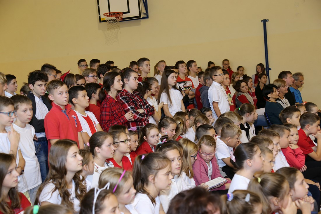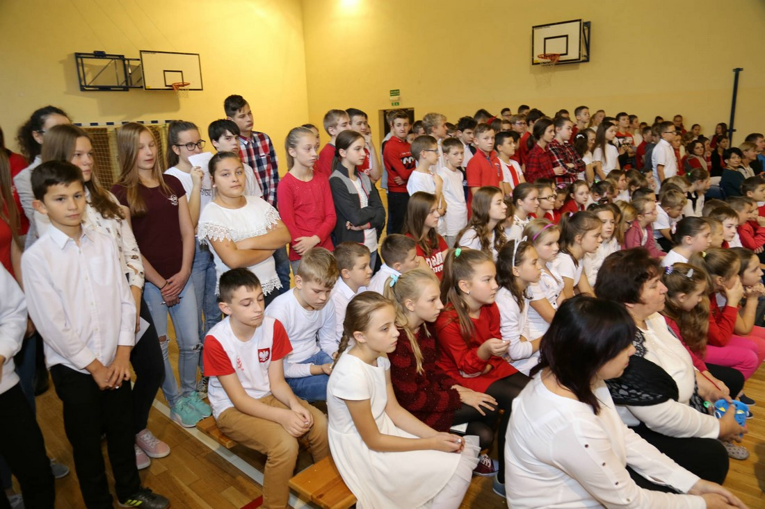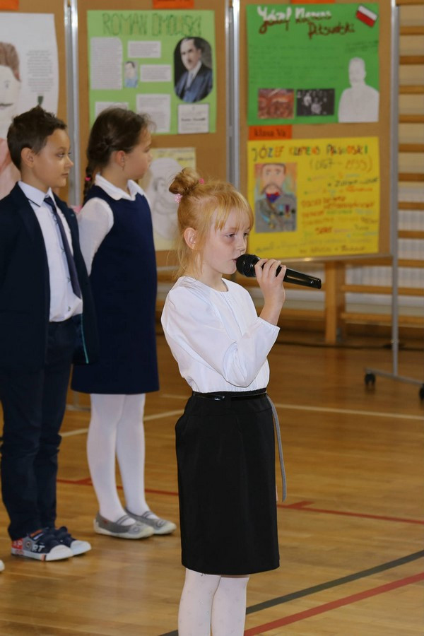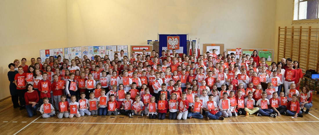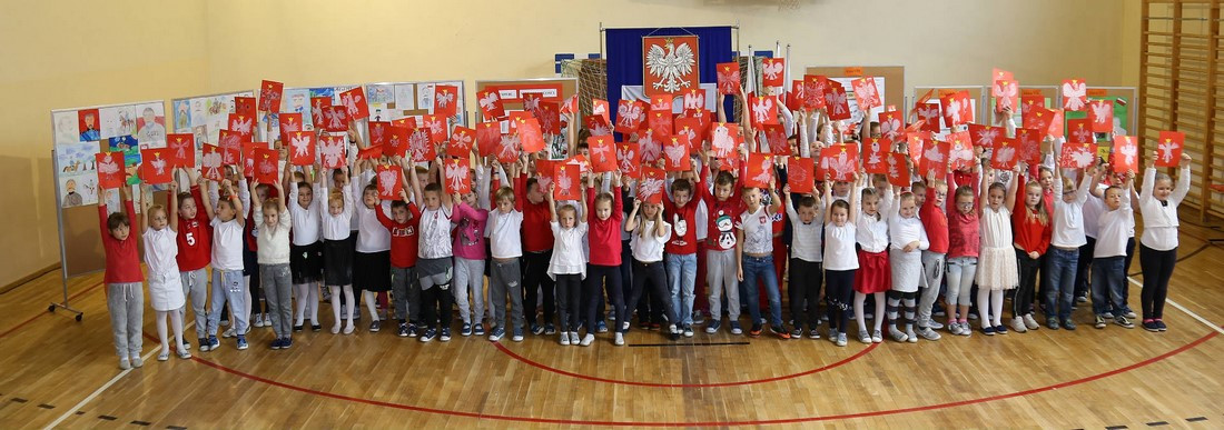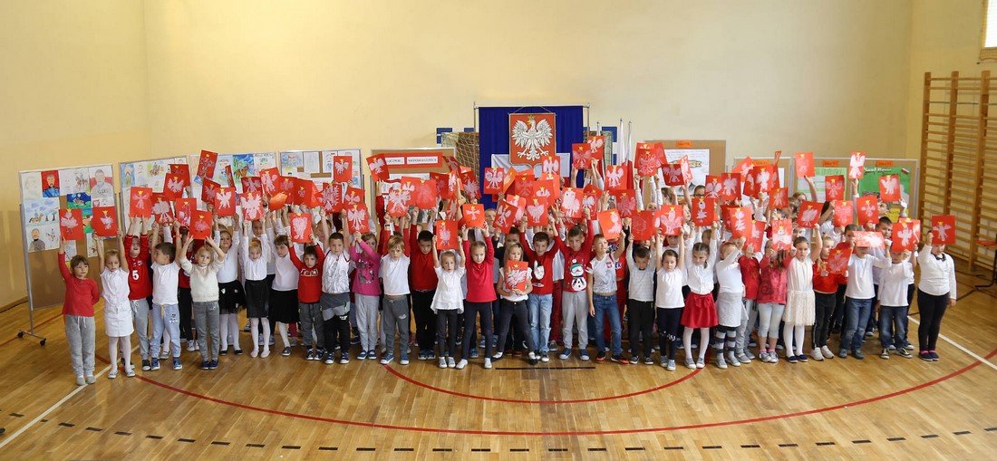 Tego dnia uczniowie wyrazili swoje przywiązanie do barw narodowych poprzez założenie biało - czerwonych strojów. O wyznaczonej porze wszyscy zgromadzili się na sali gimnastycznej, gdzie mogli podziwiać występ szkolnego kółka teatralnego. Uczniowie z wielkim przejęciem zaprezentowali montaż słowno – muzyczny o tematyce patriotycznej. Następnie przedstawiciele klas zaprezentowali wykonane przez nie plakaty poświęcone jednemu z Ojców Niepodległości. Przygotowane prace zachwycały starannością wykonania i wysokim poziomem artystycznym.