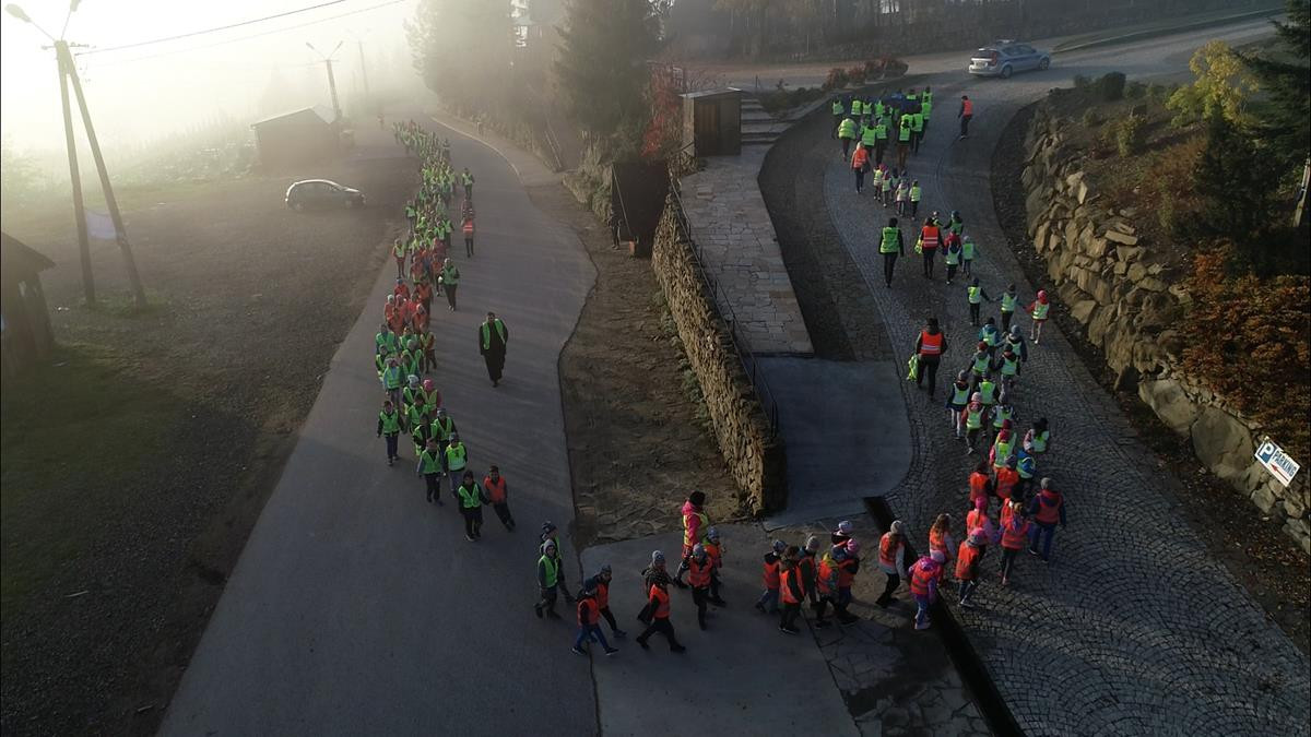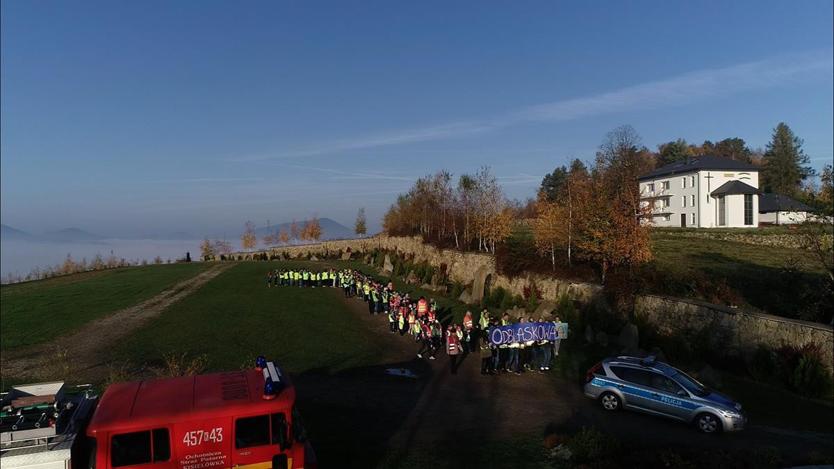 W tym dniu wieś spowita była mgłą. Mimo to widok był niesamowity! Wszyscy uczestnicy pochodu szli z dużą powagą. Przedsięwzięcie było dużym wyzwaniem logistycznym. Nad bezpieczeństwem czuwały towarzyszące od samego początku służby porządkowe – Policja i Ochotnicza Straż Pożarna z Kisielówki. Dopilnowali, aby uczestnicy przemarszu nie tylko efektownie, ale przede wszystkim bezpiecznie dotarli na miejsce zgrupowania. Był nim wysoko położony plac nad Sanktuarium.Tam ustawiono się w specjalnym szyku tworzącym błyszczący napis „ODBLASKOWY PASIERBIEC”. Dopiero z drona można było ocenić skalę podjętego wyzwania.