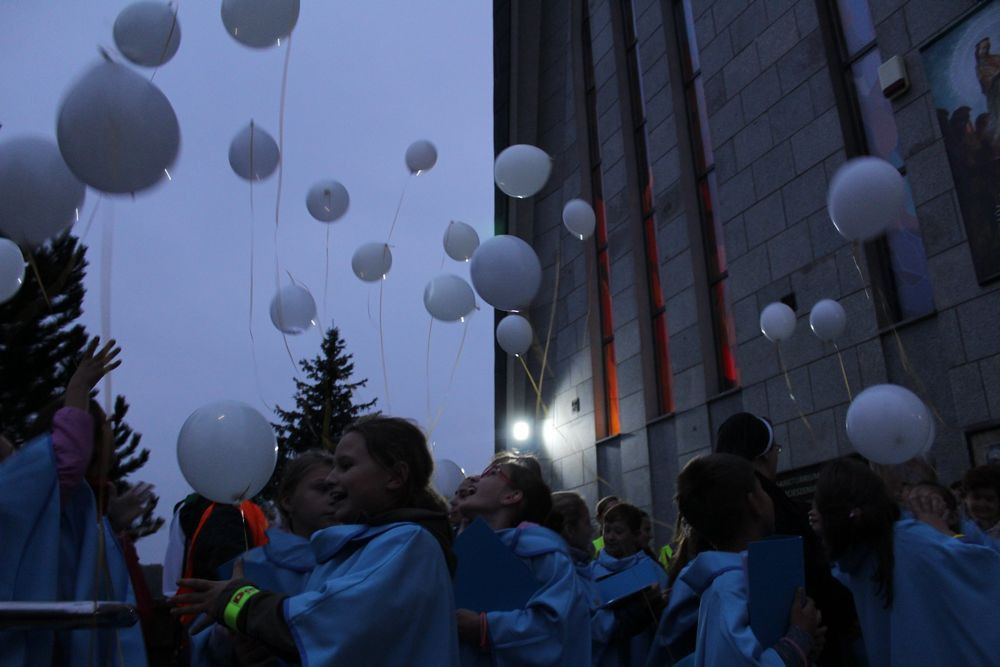 Po nabożeństwie wszyscy zebrali się przed kościołem, aby w modlitwie polecić ofiary wypadków i wypuścić „Światełko do nieba”.