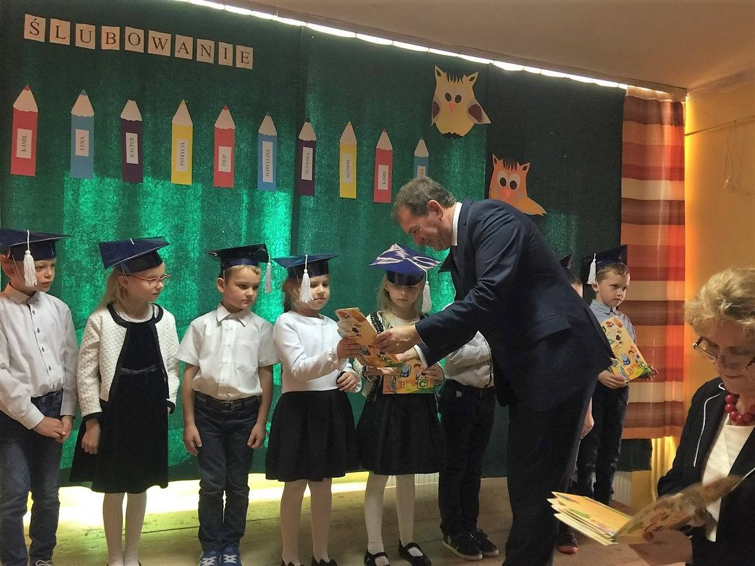 Dyrektor placówki złożyła pierwszoklasistom życzenia sukcesów, motywacji i zapału do pracy, a rodzicom radości ze swych pociech. Życzenia jak najlepszych wyników w nauce i tego by szkoła miejscem, w którym najmłodsi będą sie dobrze czuć, pogłębiając wiedzę i rozwijając zainteresowania złożył najmłodszym obecny na uroczystości Wicewójt Gminy Limanowa Marian Mąka, wręczając nowym uczniom pamiątkowe dyplomy i upominki. Satysfakcji i zadowolenia z nauki pierwszoklasistom życzyła również Dyrektor Gminnego Zespołu Obsługi Szkół Edyta Król.