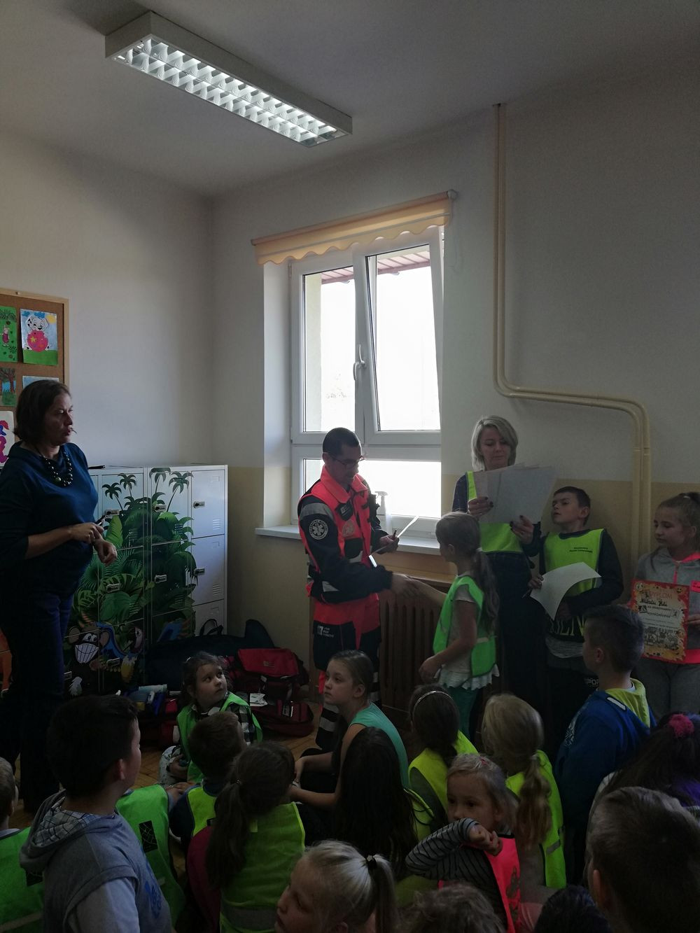 „Bezpieczeństwo w ruchu drogowym”. Przybyli goście wręczyli laureatom pamiątkowe dyplomy oraz nagrody. Zajęcia z ratownikami wzbudziły zainteresowanie nie tylko wśród uczniów, ale również i rodziców, którzy włączyli się do udziału w roli obserwatorów. Koordynatorem akcji z ramienia szkoły była Barbara Lisek.