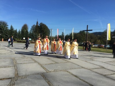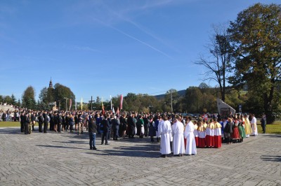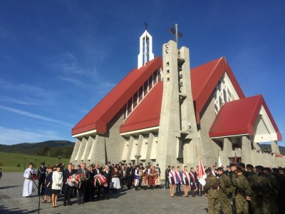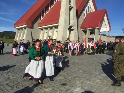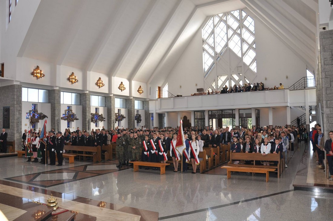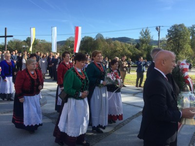 Ta patriotyczna uroczystość rozpoczęła się o godz. 14:00 Mszą Świętą sprawowaną pod przewodnictwem ks. prałata Wiesława Piotrowskiego – dziekana dekanatu limanowskiego. Poczty sztandarowe: szkoły, OSP i Rady Powiatowej NSZZ Rolników Indywidualnych Solidarność, społeczność szkolna, zespół regionalny „Mali Męcinianie”, orkiestra dęta, członkowie Związku Strzeleckiego „Strzelec” oraz licznie zgromadzeni wierni wraz z przedstawicielami władz w modlitewnym skupieniu dziękowali Bogu za niepodległą Polskę. Wielką wartość wolności oraz bohaterstwo tych męcinian, którzy oddali życie w jej obronie, przypomniał w swojej homilii ks. proboszcz Antoni Piś.