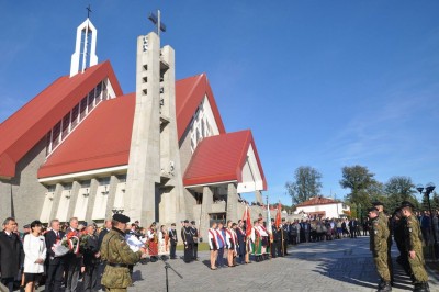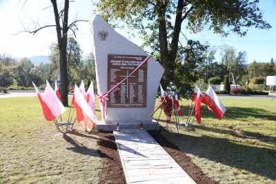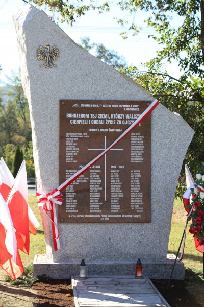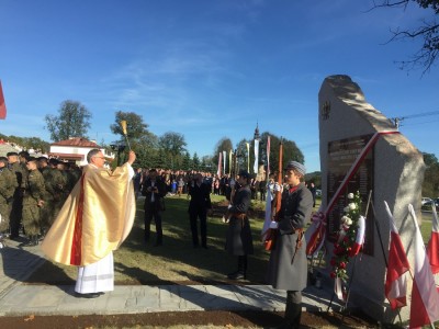 Po Mszy św. uczestnicy uroczystości udali się na plac kościelny, gdzie miało miejsce odsłonięcie pamiątkowej tablicy z nazwiskami naszych rodaków zamordowanych podczas I i II wojny światowej. Komendant „Strzelca” odczytał nazwiska męcinian poległych w obronie Ojczyzny oraz wezwał do Apelu Poległych wszystkich tych, którzy bohatersko walczyli o wolną Polskę.