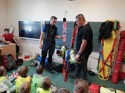 Panowie Goprowcy instruowali i edukowali uczniów jak bezpiecznie wędrować, prawidłowo zachować się w górach i na trasach narciarskich. Mówili też o sytuacjach ekstremalnych, zagrożeniach spowodowanych warunkami pogodowymi (burza, mgła, spadek temperatury), prawidłowym zachowaniu się w sytuacjach bezpośredniego zagrożenia. Poinstruowali uczniów jak udzielić pierwszej pomocy i pod jaki numer ratunkowy zadzwonić w górach.