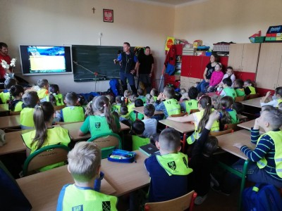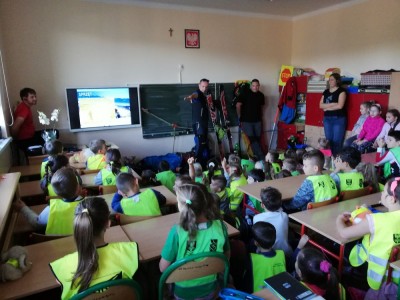 Uczniowie klas II a, II b i III Szkoły Podstawowej uczestniczyli w spotkaniu z przedstawicielami Grupy Podhalańskiej GOPR, które miało na celu przygotowanie dzieci do bezpiecznego wędrowania po górach.