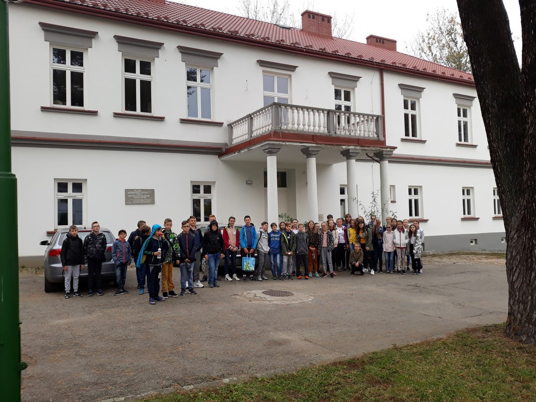 Wycieczka rozpoczęła się w Marcinkowicach, gdzie uczniowie na miejscowym cmentarzu złożyli znicze na grobach poległych legionistów. Następnie udali się do zabytkowego Pałacu Morawskich. Tam pani przewodnik przedstawiła interesującą historię samego budynku i jego ostatnich właścicieli. Oczywiście najbardziej pasjonującym punktem opowieści było przybycie Józefa Piłsudskiego ze swoimi legionistami. Komendant przebywał w dworku w dniach 5-6 grudnia 1914 roku, tuż przed słynną bitwą pod Marcinkowicami. Liczne anegdoty oraz barwnie snuta pogadanka poparta rozległą wiedzą historyczną sprawiły, że uczestnicy wycieczki zadawali liczne pytania i chłonęli każde słowo prelegentki z zapartym tchem.