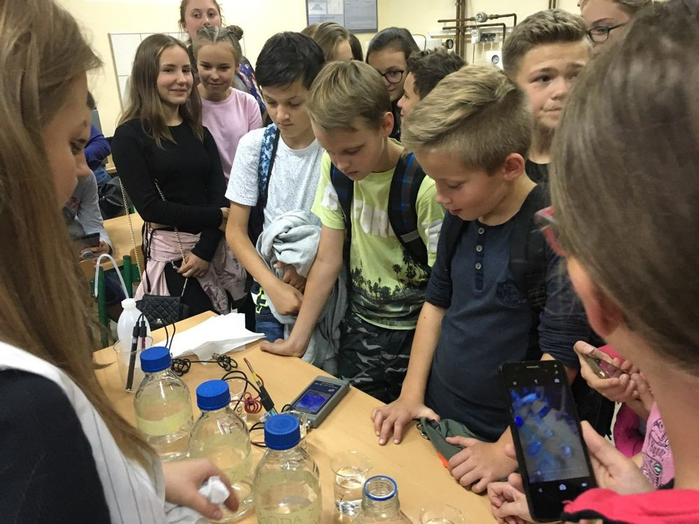 Kolejnym punktem programu był udział w zajęciach pt. „Chemia a środowisko”. Uczniowie dowiedzieli się, jak rozpoznać rodzaje i jakość różnych rodzajów wody, co jest istotne w ocenie jej dalszego wykorzystania. Podczas pokazów wykorzystany został wielofunkcyjny analizator z elektrodami, a także testy do szybkiego oznaczania wybranych wskaźników. Podczas Nocy Naukowców uczniowie wzięli udział także w konkursie matematycznym dla uczniów klas czwartych i piątych szkoły podstawowej zajmując II i III miejsca. Dużą atrakcją okazał się żyroskopowy symulator dla kierujących. Kto chciał, mógł przekonać się na własnej skórze, jak reaguje ciało podczas dachowania samochodu. Uczestnicy wyprawy odwiedzili również laboratorium, gdzie z wielkim zaciekawieniem obejrzeli pokaz programowalnych robotów.