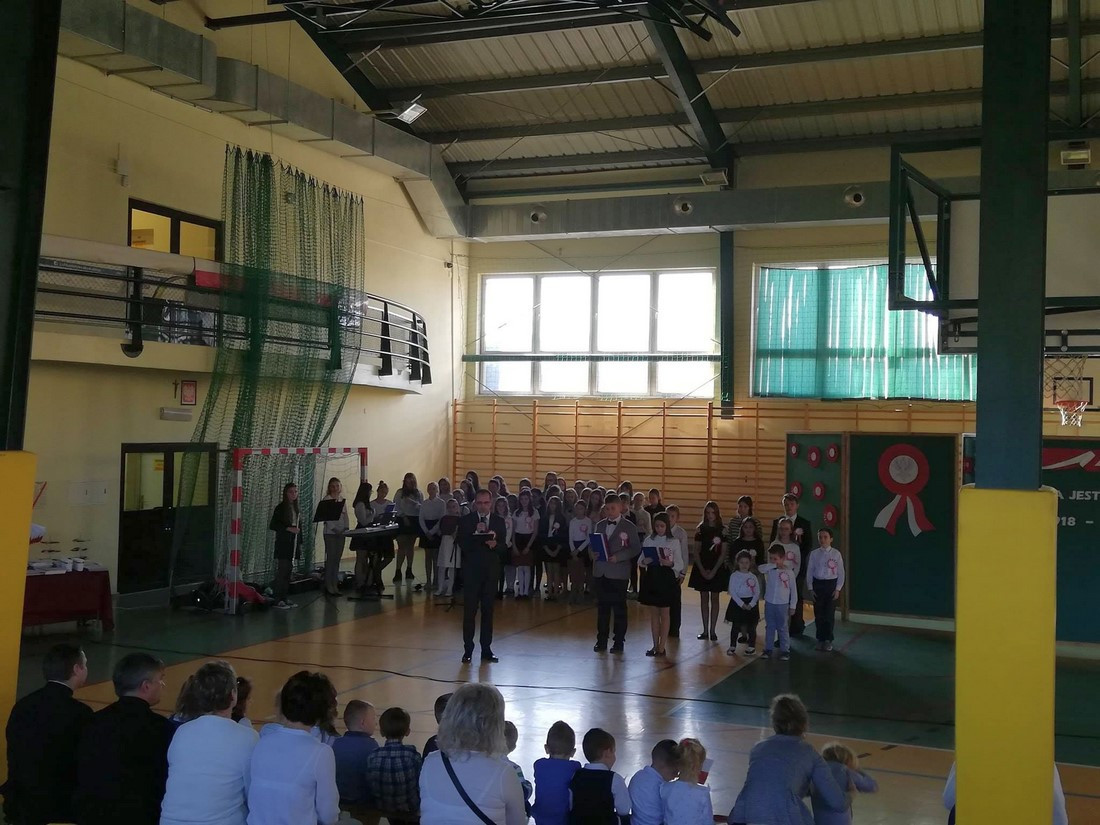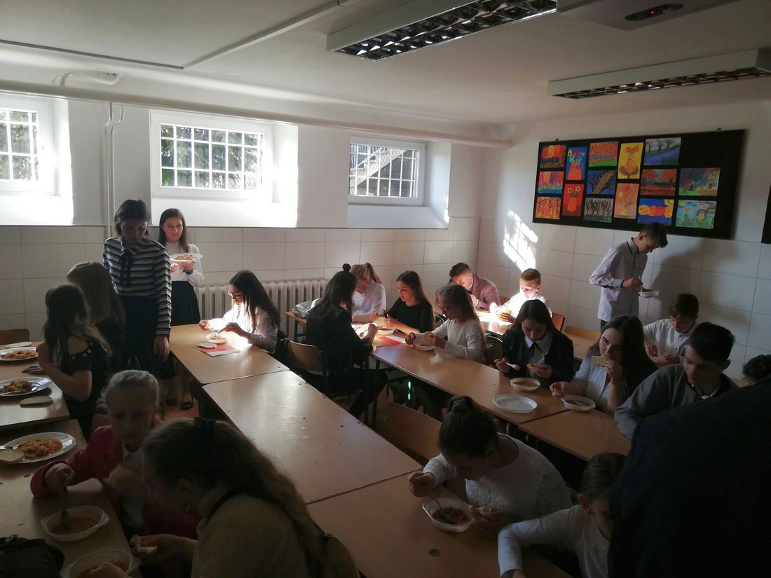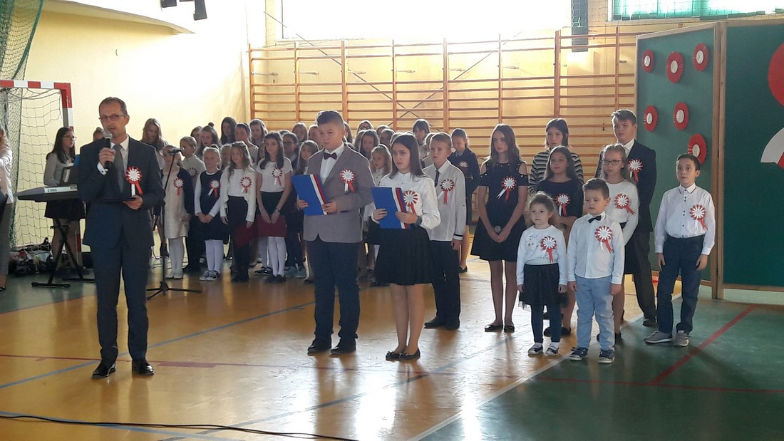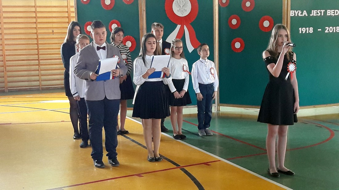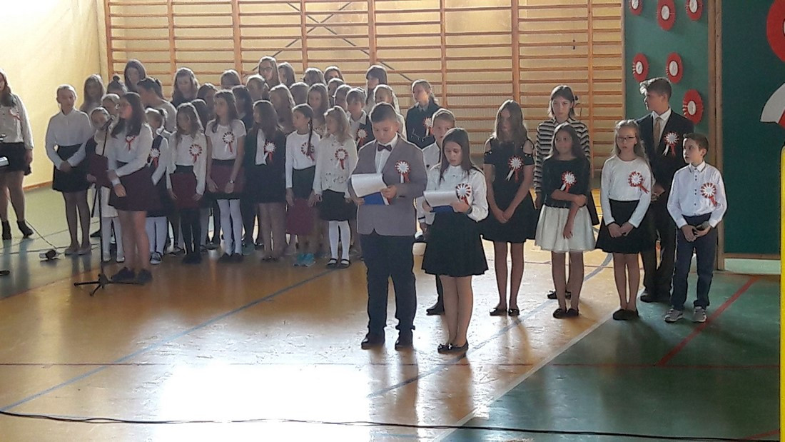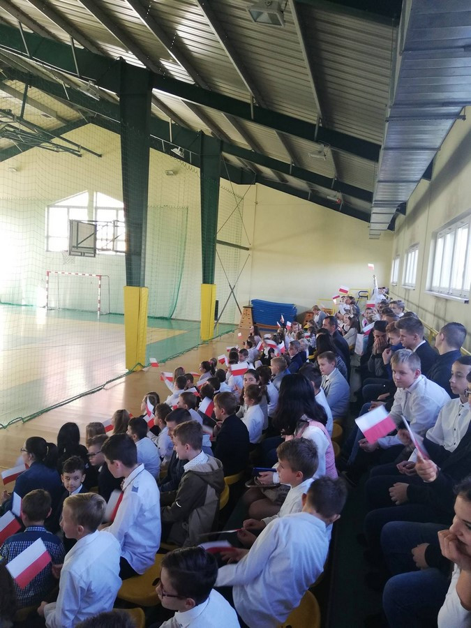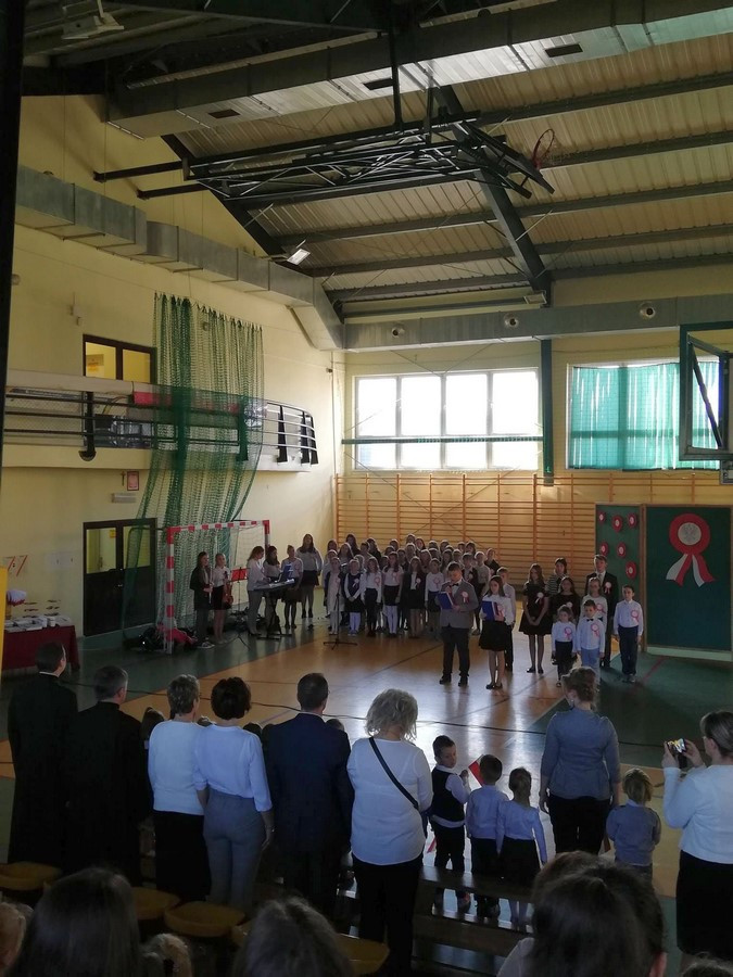 „ My mamy szczęście, że w tym momencie, żyć nam tu przyszło w kraju nad Wisłą… Nasz kraj szczęśliwy, piękny prawdziwy. Ludzie uczynni, w sercach niewinni, nasz kraj szczęśliwy …”. I w tak patriotycznej i radosnej atmosferze wszyscy uczestnicy akademii wybrali się w ramach przerwy na patriotyczny bigos, którego zapach roznosił się po całej szkole.