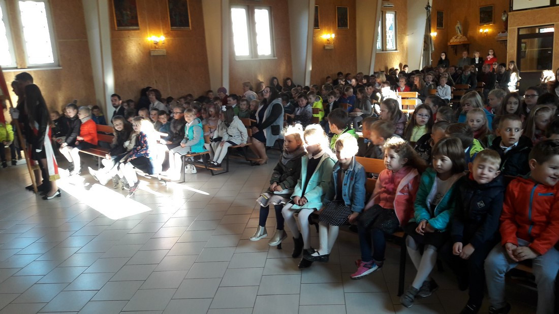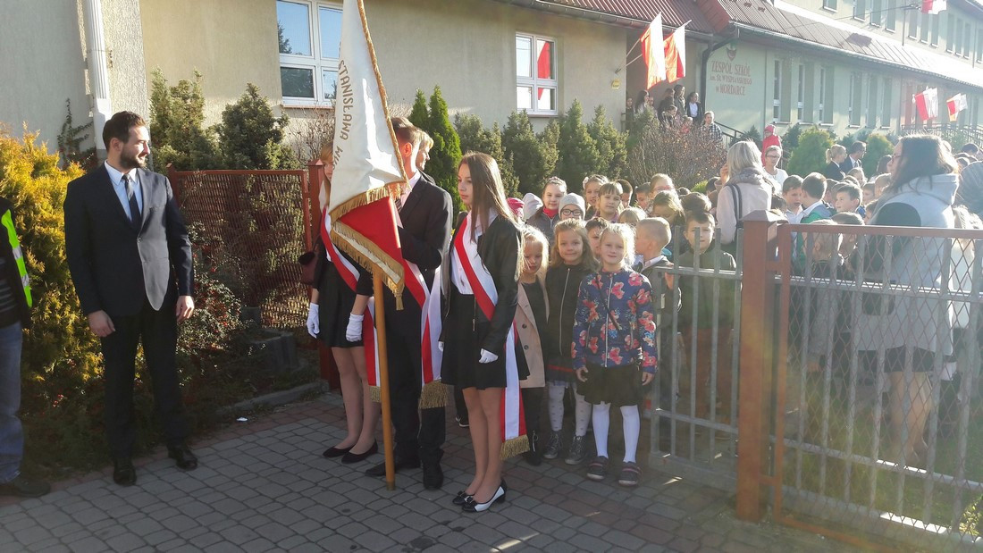Mszą Świętą koncelebrowaną za Ojczyznę odprawioną w kaplicy pod wezwaniem Miłosierdzia Bożego w Mordarce. Proboszcz ksiądz Zbigniew Stabrawa w charakterystyczny dla siebie, doniosły sposób, w pięknie przystrojonej świątyni zwrócił się ze Słowem Bożym do zebranej młodzieży, przedstawicieli rodziców, Grona Pedagogicznego i gości na czele z Edytą Król – dyrektorem Gminnego Zespołu Obsługi Szkół - reprezentantem Urzędu Gminy. Ksiądz Stabrawa w wygłoszonym kazaniu nie tylko przypomniał historyczne losy Narodu Polskiego, ale także zwrócił uwagę na obowiązki, które stoją dziś przed nami Polakami, dziećmi naszej wspólnej Ojczyzny.