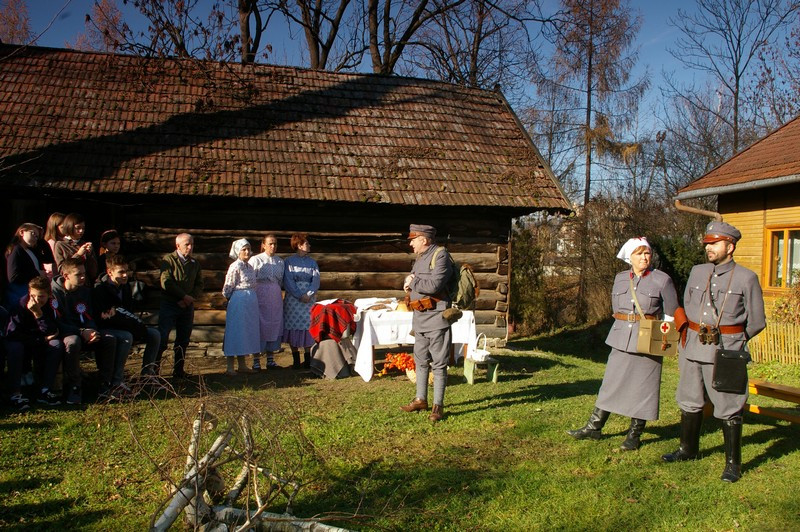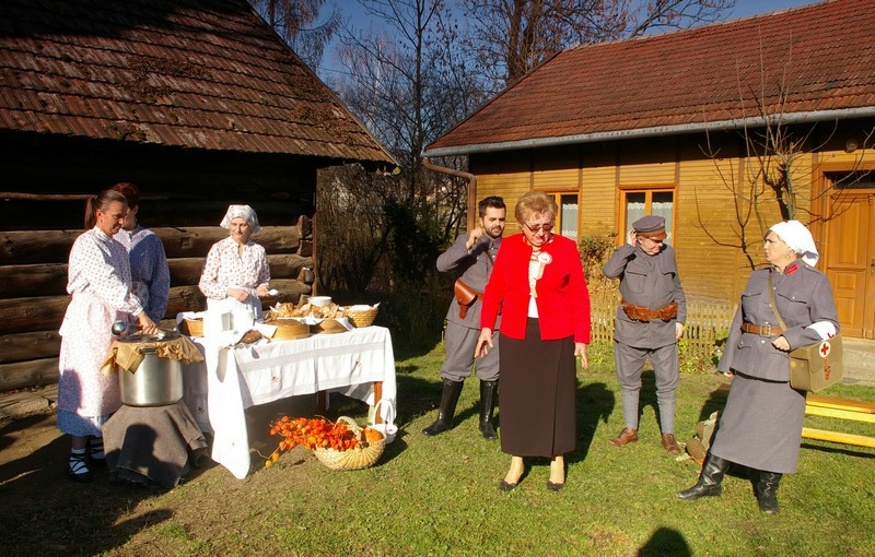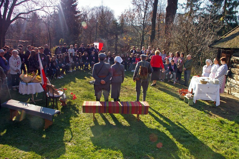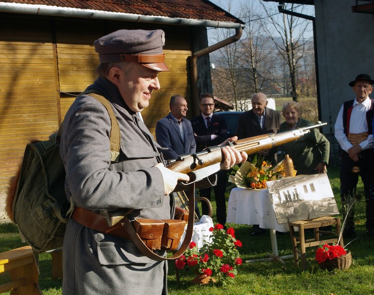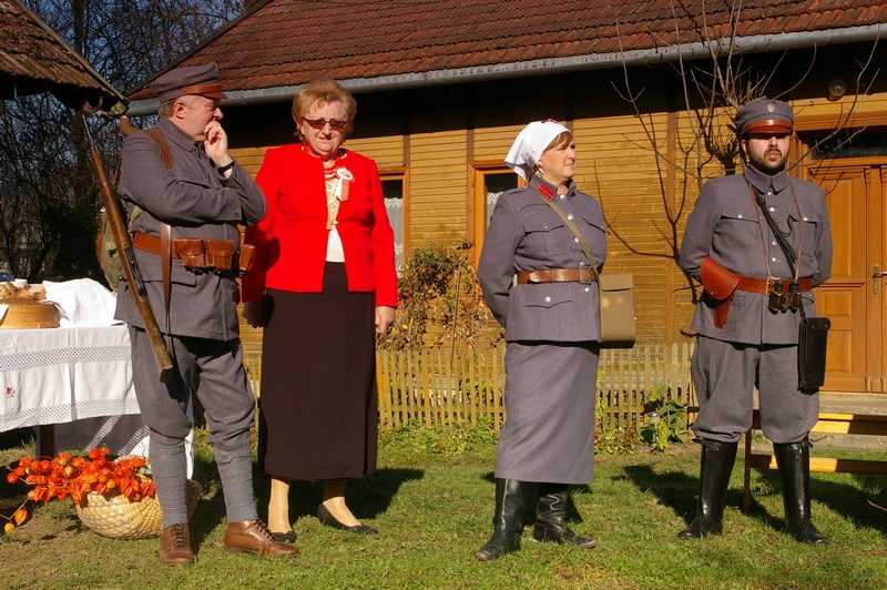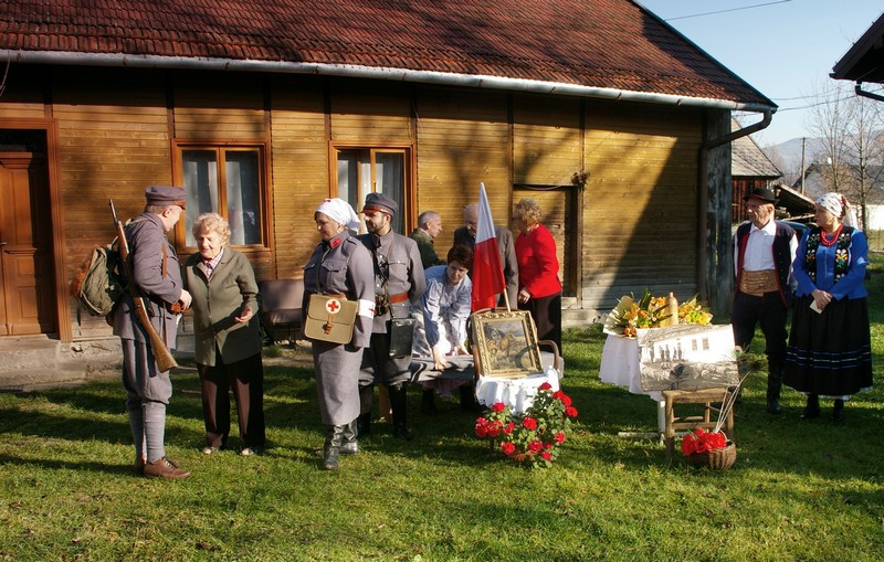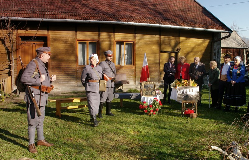 O wyjątkową oprawę spotkania zadbała ich córka - pani Małgorzata Górka. Powitała przybyłych i przybliżyła historię pobytu Komendanta Piłsudskiego w tym domu. Następnie wystąpili w kostiumach legionistów aktorzy z Teatru Robotniczego w Nowym Sączu.