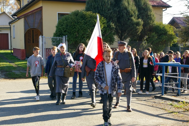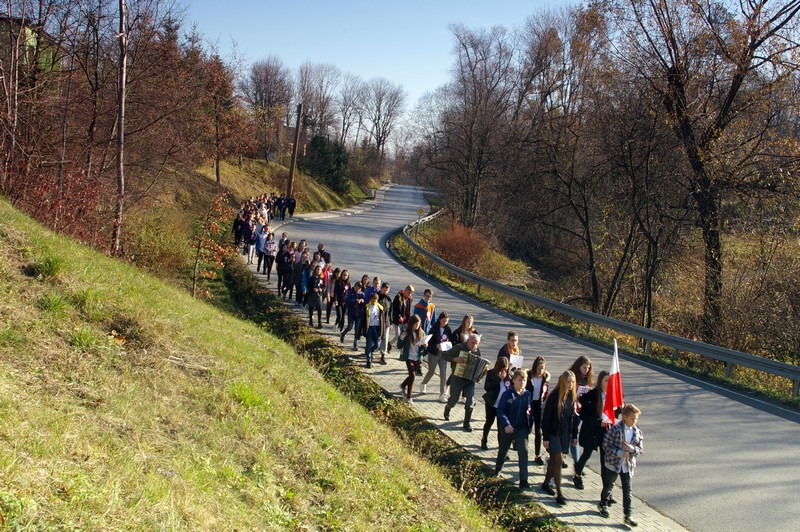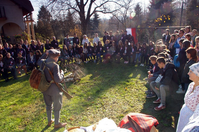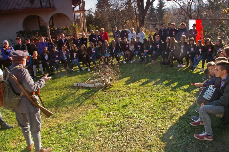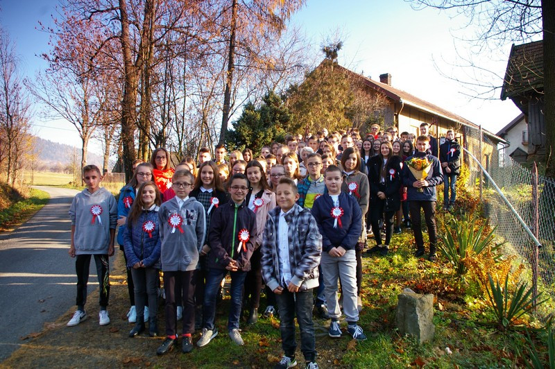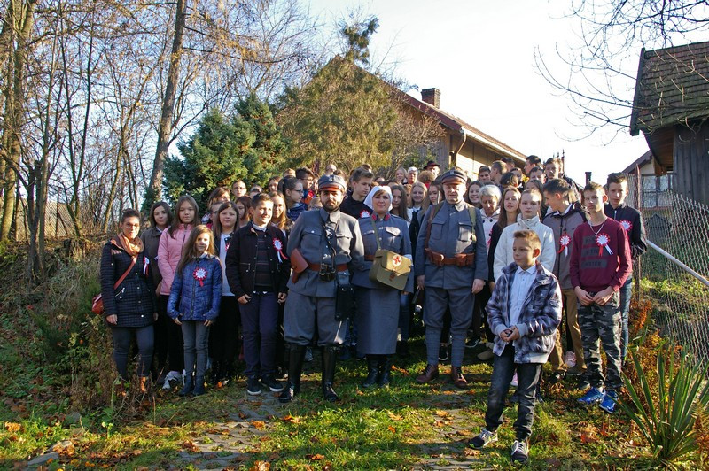 Zgodnie z programem obchodów stulecia niepodległości, 8 listopada 2018 roku uczniowie przeszli śladami Józefa Piłsudskiego i legionistów po Pisarzowej. Najmłodsi złożyli kwiaty i zapalili znicze na pomniku upamiętniającym Pisarzowian poległych za Ojczyznę. Klasy czwarta i piąte poszły na miejscowy cmentarz oddać hołd pochowanym tam uczestnikom I wojny światowej. Młodzież klas starszych udała się na Górkówkę. Należy nadmienić, że Józef Piłsudski, wycofując się do Limanowej po bitwie pod Marcinkowicami, zatrzymał się tutaj na nocleg. Uczniów gościnnie przyjęli obecni gospodarze – państwo Stanisława i Jan Górkowie.