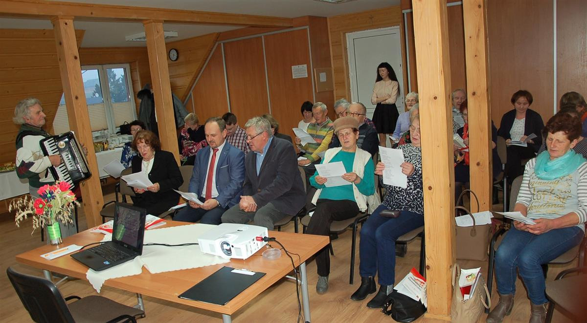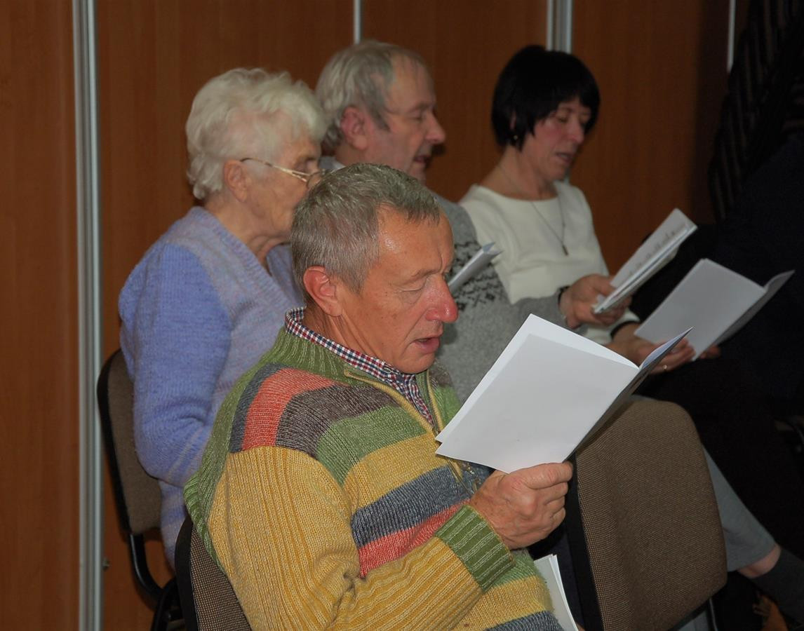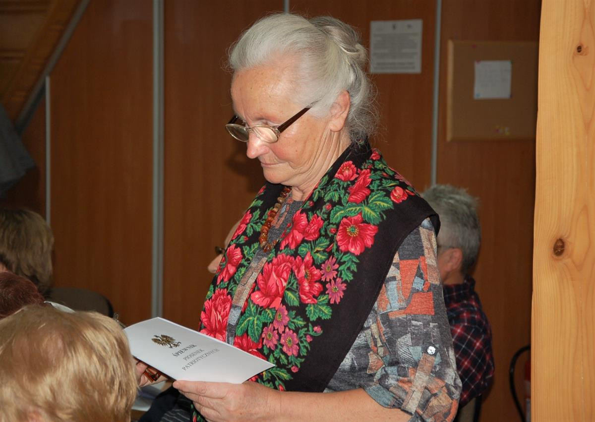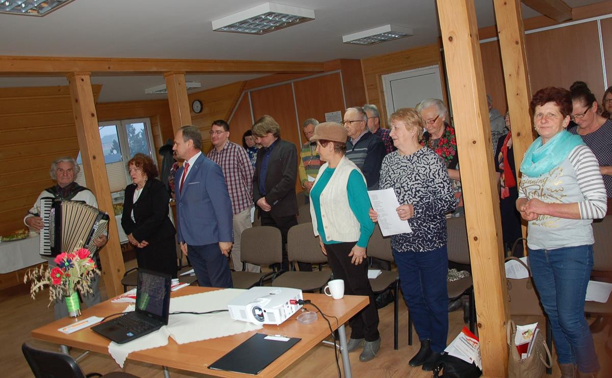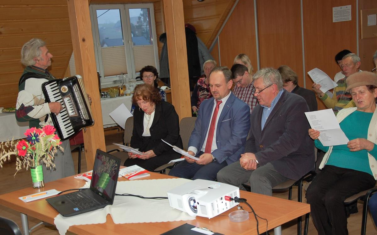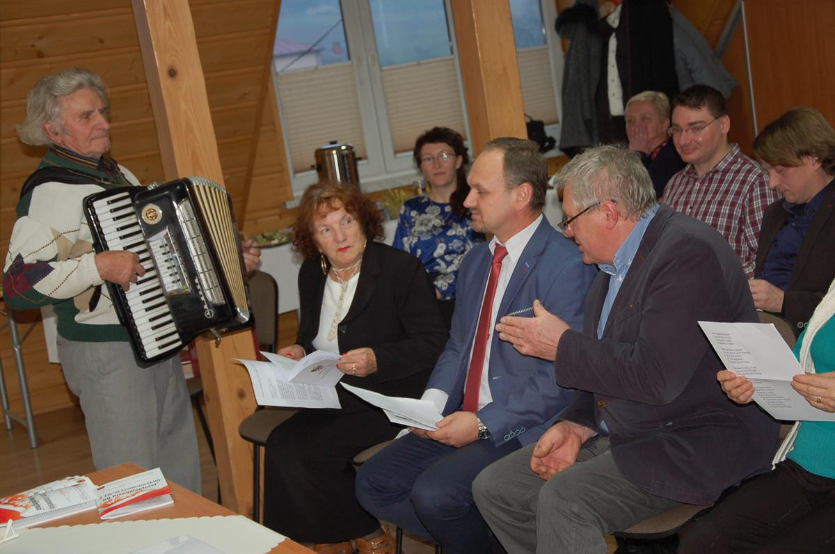 Spotkanie uświetniło czytanie poezji patriotycznej Ryszarda Jabłońskiego - lokalnego poety oraz wspólny śpiew pieśni patriotycznych przy akompaniamencie akordeonu Bolesława Kochańskiego z Męciny.
