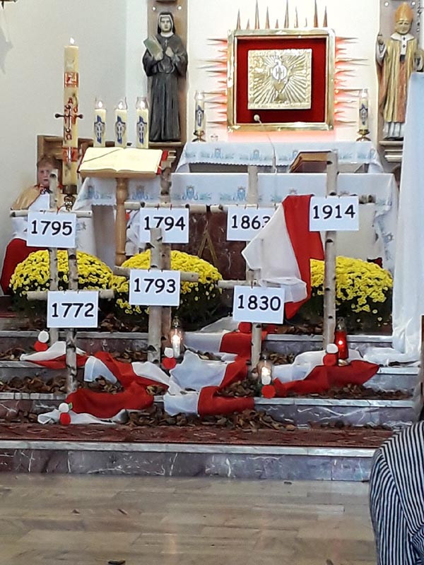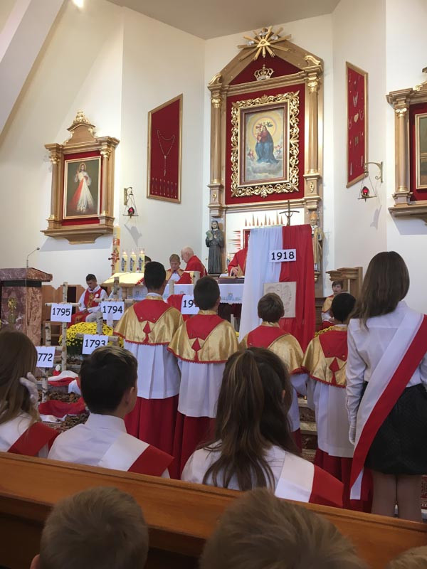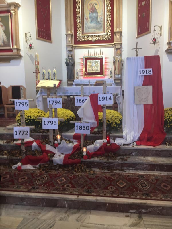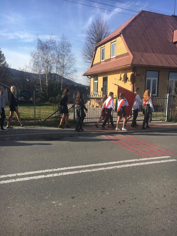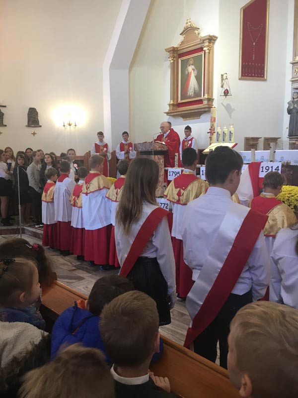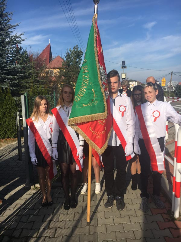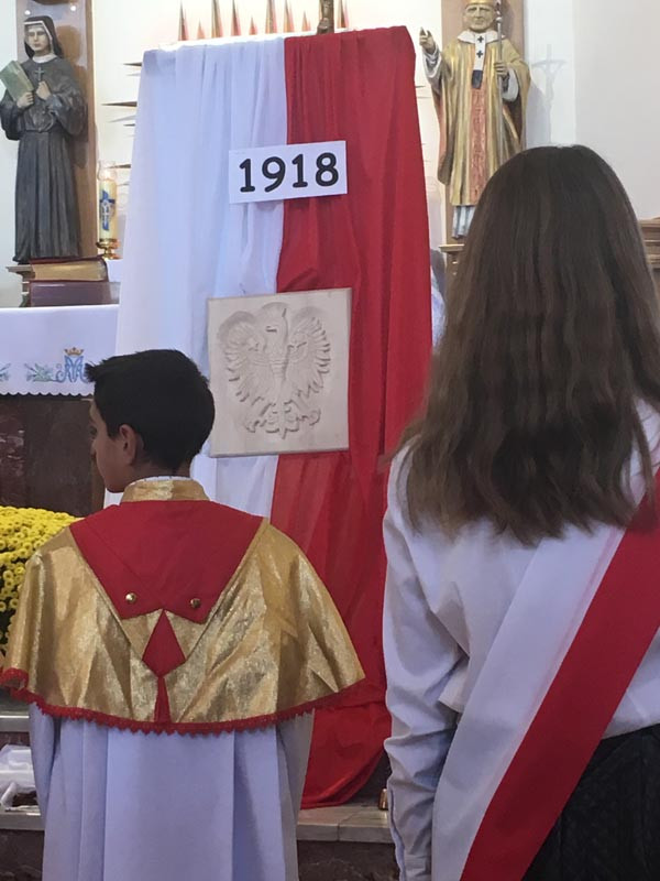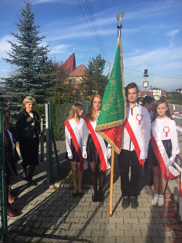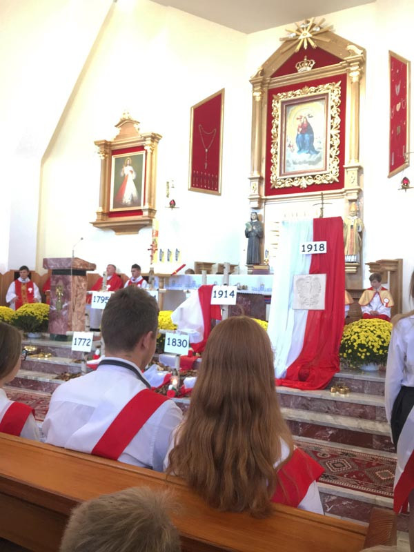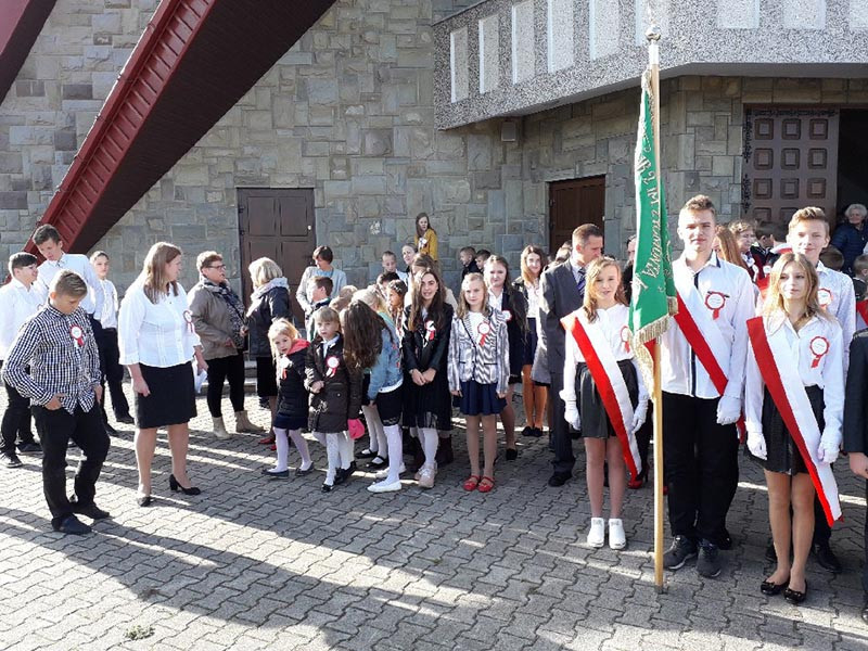 Również w niedzielę 11 listopada na uroczystej mszy św. młodzież szkoły wystąpiła ponownie ze swoim programem artystycznym, gdzie wspólnie z wiernymi zgromadzonymi na mszy św. odśpiewano Mazurka Dąbrowskiego i minutą ciszy uczczono pamięć poległych za wolność naszej Ojczyzny. Po tych nabożeństwach każdy mógł sobie uświadomić, jaką wartością dla Polaków jest wolna Polska i jakie to dla nas dobrodziejstwo, pamiętając jednocześnie słowa Cypriana Kamila Norwida: „Ojczyzna to wielki zbiorowy obowiązek”.