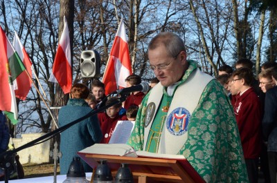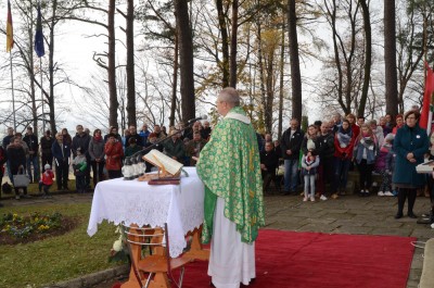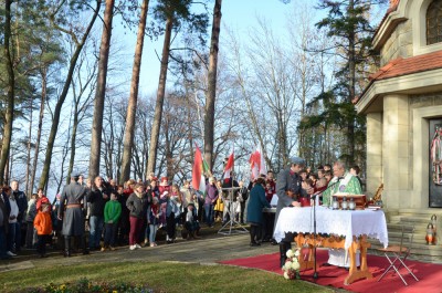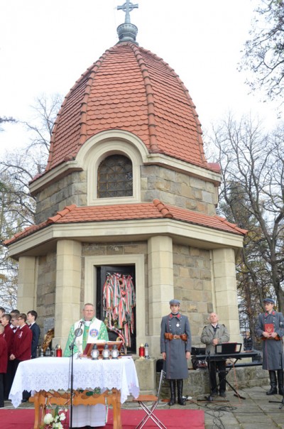 Po części „konkursowej” miała miejsce polowa Eucharystia, którą sprawował kapelan WP ks. płk Waldemar Rawiński. Celebrę mszy św. uświetnił członek LSHO Jabłoniec 1914 Ignacy Tokarczyk, a w oprawę całej uroczystości włączył się Chór Chłopięcy Bazyliki Matki Bożej Bolesnej. Po mszy  św. ks. płka Waldemar Rawiński poświęcił krzyż ufundowany przez Lidię i Czesława Kunów z rodziną na okoliczność setnej rocznicy poświęcenia limanowskiej świątyni.