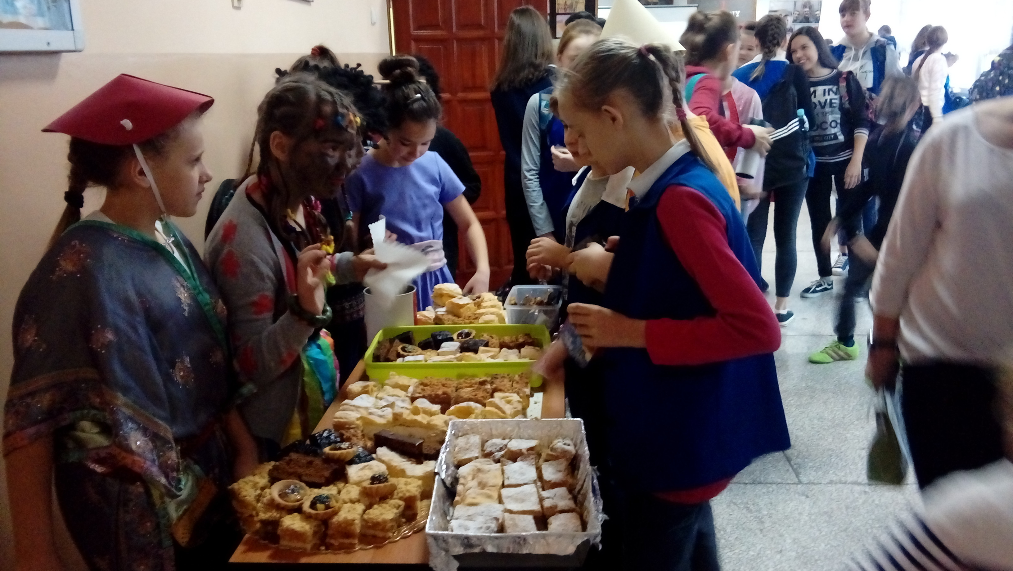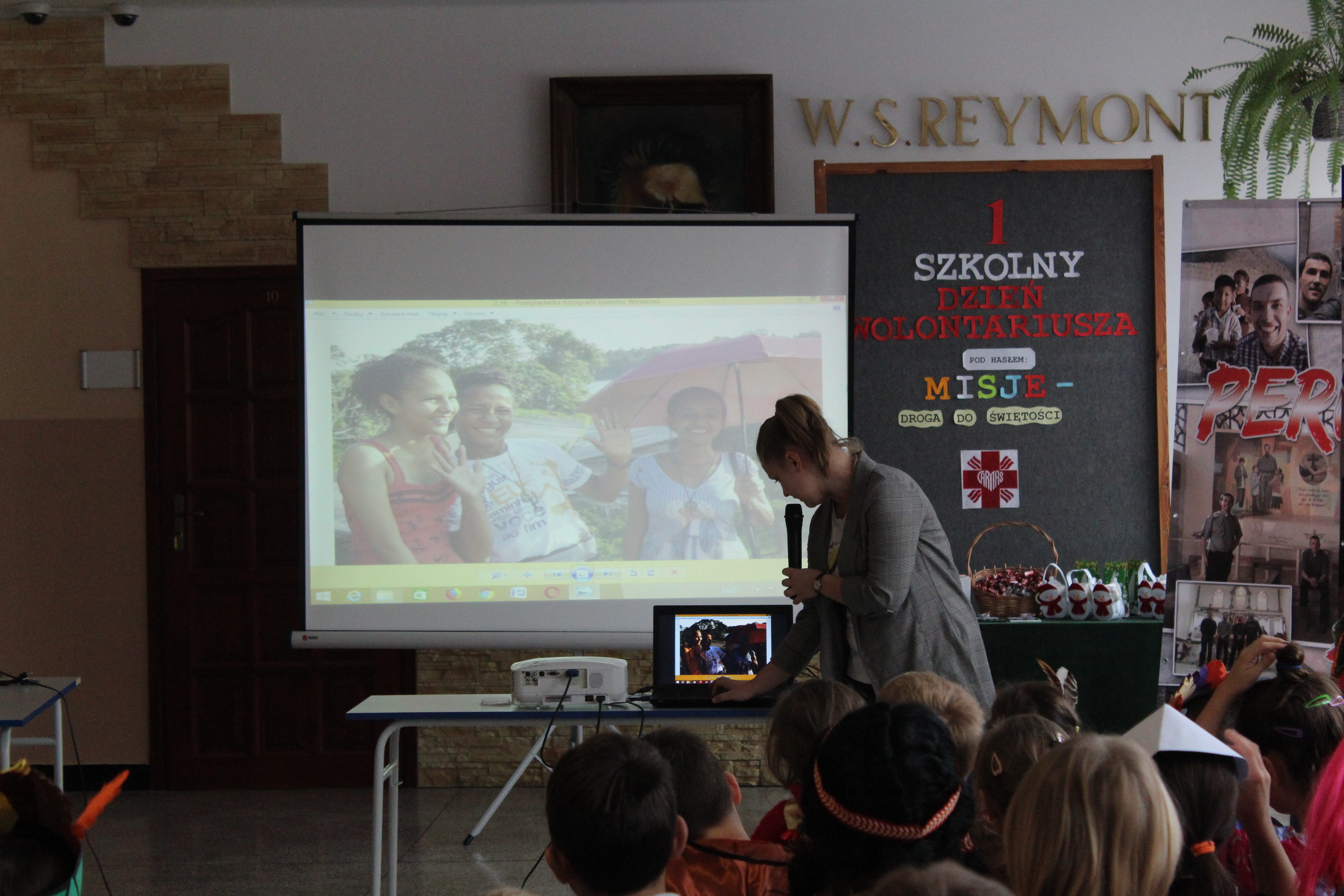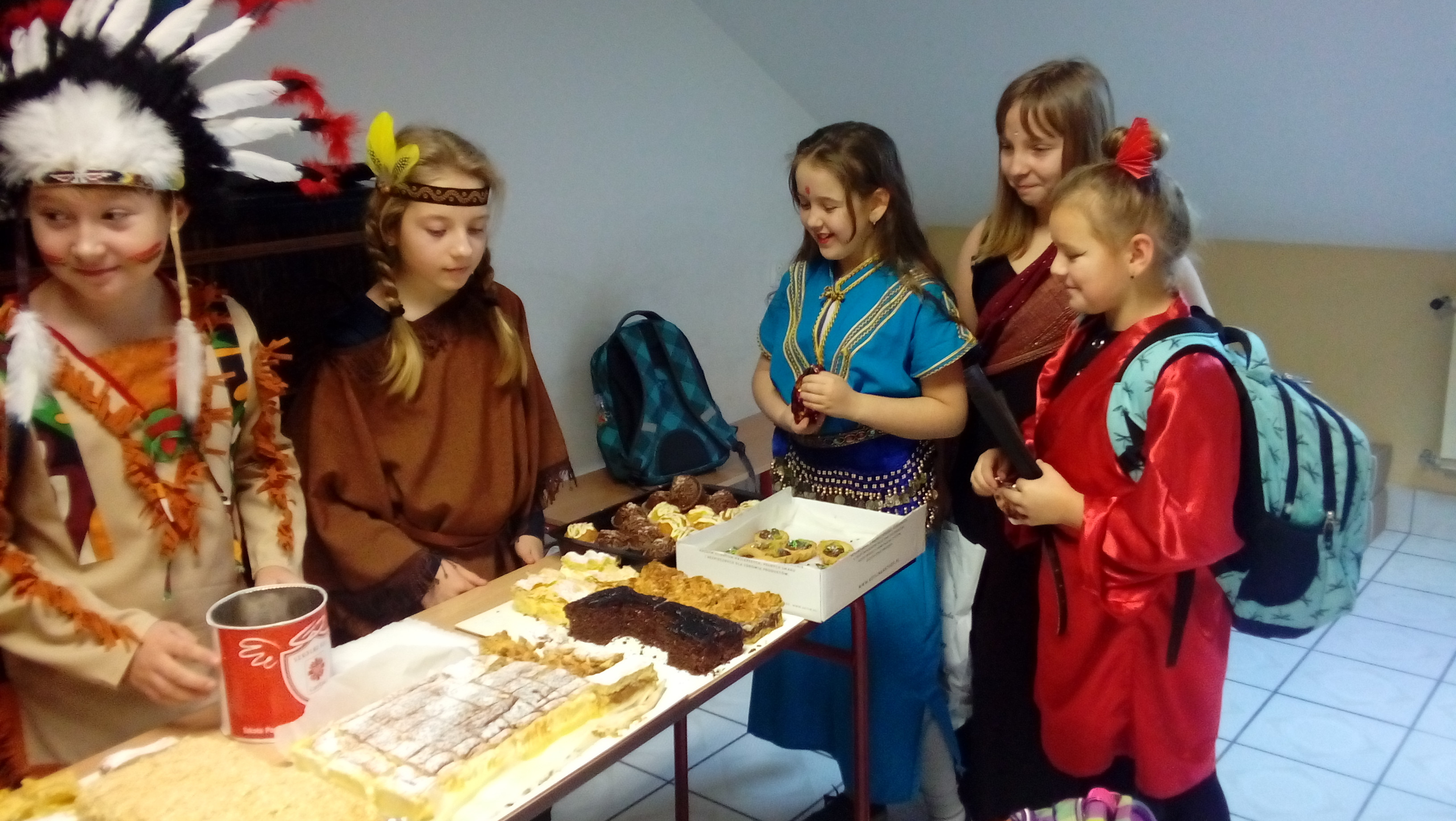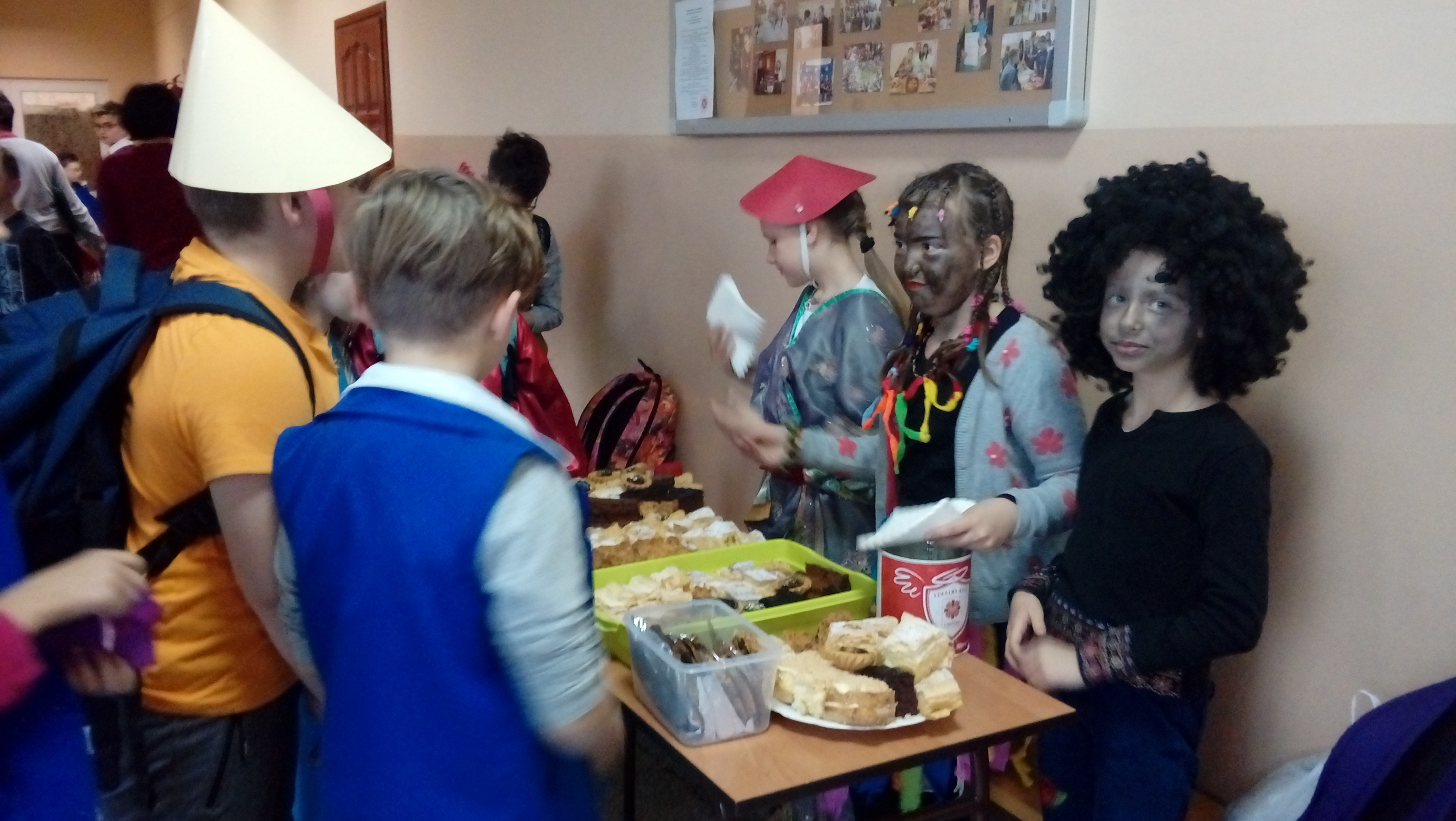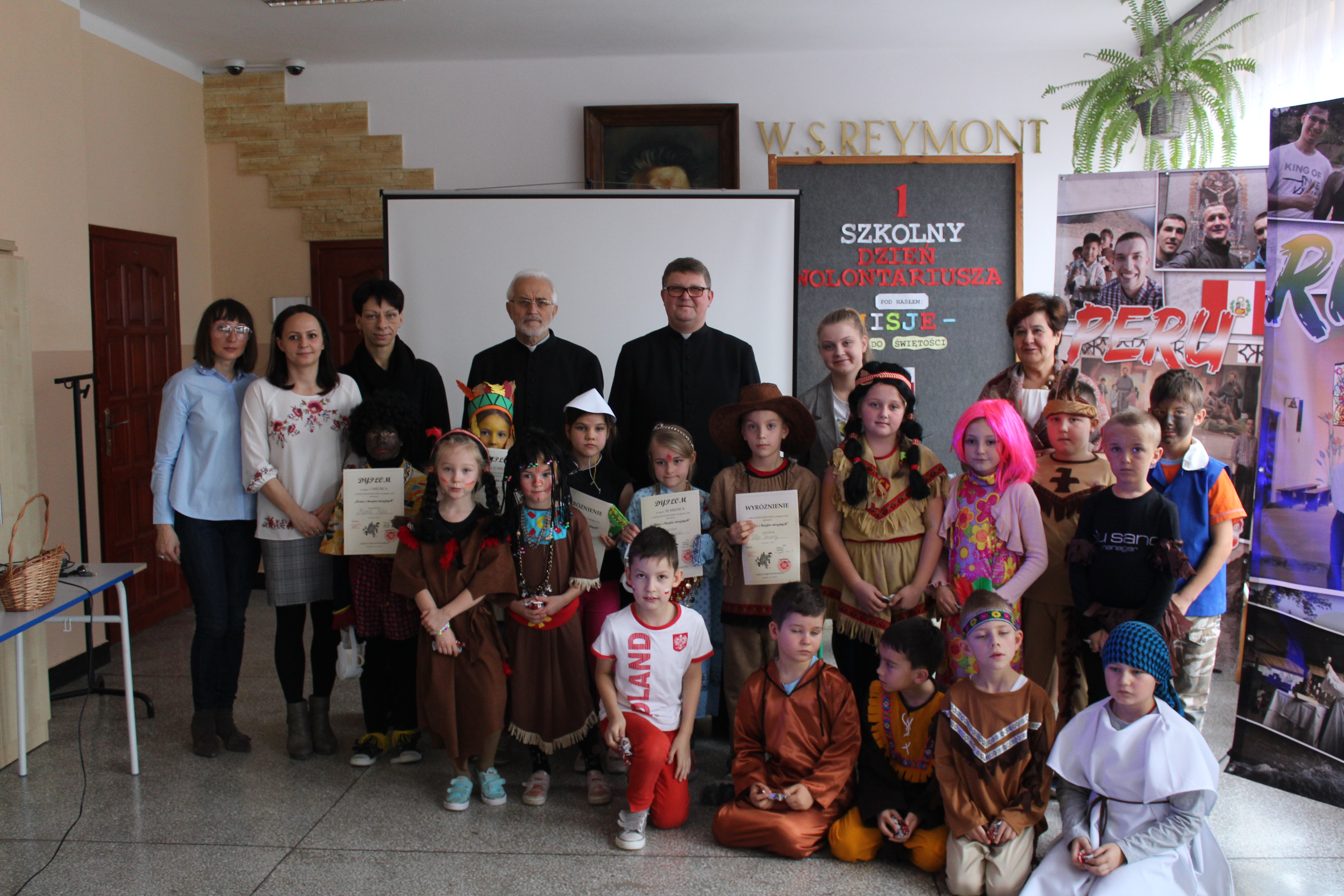 Warto podkreślić, że prelekcji przygotowanej przez księdza wicedyrektora oraz wolontariuszkę słuchała niezwykła publiczność – dzieci wszystkich kontynentów. To właśnie z okazji Dnia Wolontariusza uczniowie szkoły przebrali się za dzieci z krajów misyjnych. Niektórzy zmienili się wręcz nie do poznania! Na szkolnym korytarzu można było spotkać Japonki, Chinki, Indian, Murzynów, a nawet Arabów.