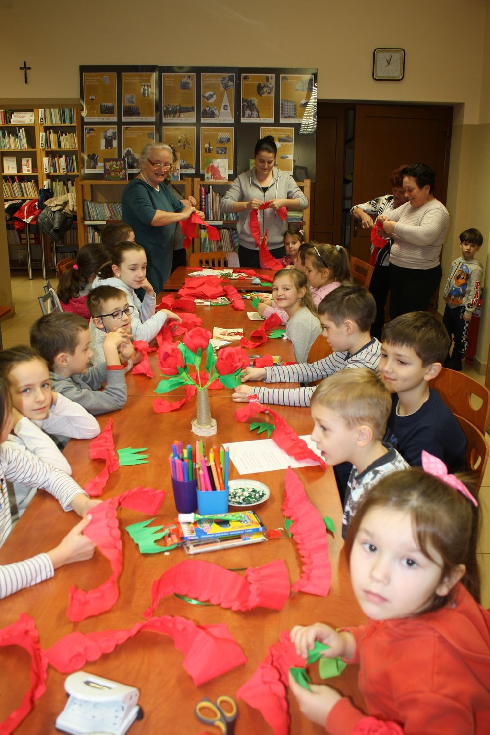 W tym miejscu należy się ukłon wszystkim twórcom ludowym, którzy bezinteresownie poświęcili swój czas najmłodszym. Na dzieci czekały warsztaty, podczas których robili cuda z bibuły pod czujnym okiem – Stanisławy Oleksy z Męciny. Teresa Dudziak z Pasierbca wprowadziła uczestników w ciekawy świat rysunków ,,mandali”. Warsztaty prowadziły także Koła Gospodyń Wiejskich z Rupniowa Centrum i Łososiny Górnej. W trakcie ferii nie zapomniano o Babciach i Dziadkach, którzy licznie zgromadzili się w bibliotecznych progach obchodząc swój dzień. Najaktywniejsi czytelnicy z Gminnej Biblioteki Publicznej w Starej Wsi i wszystkich bibliotecznych filii pojechali na warsztaty do MCK ,,Sokół” w Nowym Sączu w ramach Bonu Kultury. Zajęcia w sądeckim centrum kultury z prowadzone były pod hasłem ,,Na polanie pod kopką – dawne zabawy i zabawki ludowe”. Dzieci miały okazję zobaczyć, czym bawiły się ich babcie i dziadkowie. Trzeba przyznać, że drewniane koniki, lalki ze słomy, pukawki czy drewniane koguciki robiły prawdziwą furorę. Na pamiątkę dzieci zabrały ze sobą gliniany gwizdek w kształcie ptaszka, który podczas warsztatów własnoręcznie ozdobiły.