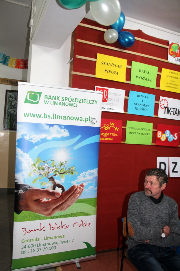Na jubileuszowej uroczystości pojawili się wyjątkowi goście: Jan Skrzekut – Wójt Gminy Limanowa, Jolanta Juszkiewicz – Przewodnicząca Rady Miasta Limanowa, Adam Dębski – Przewodniczący Komisji Oświaty, Zdrowia i Pomocy Społecznej , Marek Ziaja - Sekretarz Gminy Limanowa, Edyta Król - Dyrektor Gminnego Zespołu Obsługi Szkół w Limanowej, Wojciech Korabik - Kierownika Wydziału Kultury i Promocji Urzędu Gminy Limanowa, Sabina Załupska - Kierownik Działu Marketingu Banku Spółdzielczego w Limanowej, Bogusław Bębenek - Regionalny Kierownik Sprzedaży Papieru Mola, Tomasz Pałka – Przedstawiciela Handlowego Papieru Mola, Dorota Musiał - Kierownik Gminnego Ośrodka Pomocy Społecznej w Limanowej, Stanisław Piegza – Kierownik Wydziału Inwestycji i Zamówień Publicznych, Bogumiła Lach, Ewa Bulanda oraz Komisja Konkursowa w składzie Marta Królik, Jolanta Janas, Aleksander Majerski.
