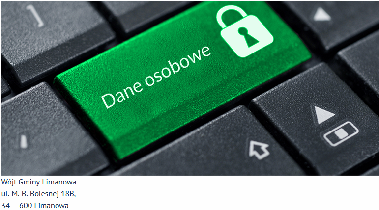 Spełniając obowiązek informacyjny wynikający z art. 13 ust. 1 i ust. 2 Rozporządzenia Parlamentu Europejskiego i Rady (UE) 2016/679 z dnia 27.04.2016r. w sprawie ochrony osób fizycznych w związku z przetwarzaniem danych osobowych i w sprawie swobodnego przepływu takich danych oraz uchylenia dyrektywy 95/46/WE (ogólne rozporządzenie o ochronie danych) (Dz. Urz. UE L z 04.05.2016 r., Nr 119, s. 1), zwanego dalej w skrócie „RODO”, informujemy, że Administratorem Państwa danych osobowych przetwarzanych w Urzędzie Gminy Limanowa jest Wójt Gminy Limanowa z siedzibą przy ul. Matki Boskiej Bolesnej 18B, 34-600 Limanowa, tel. +48 18 3372 252, e-mail:
