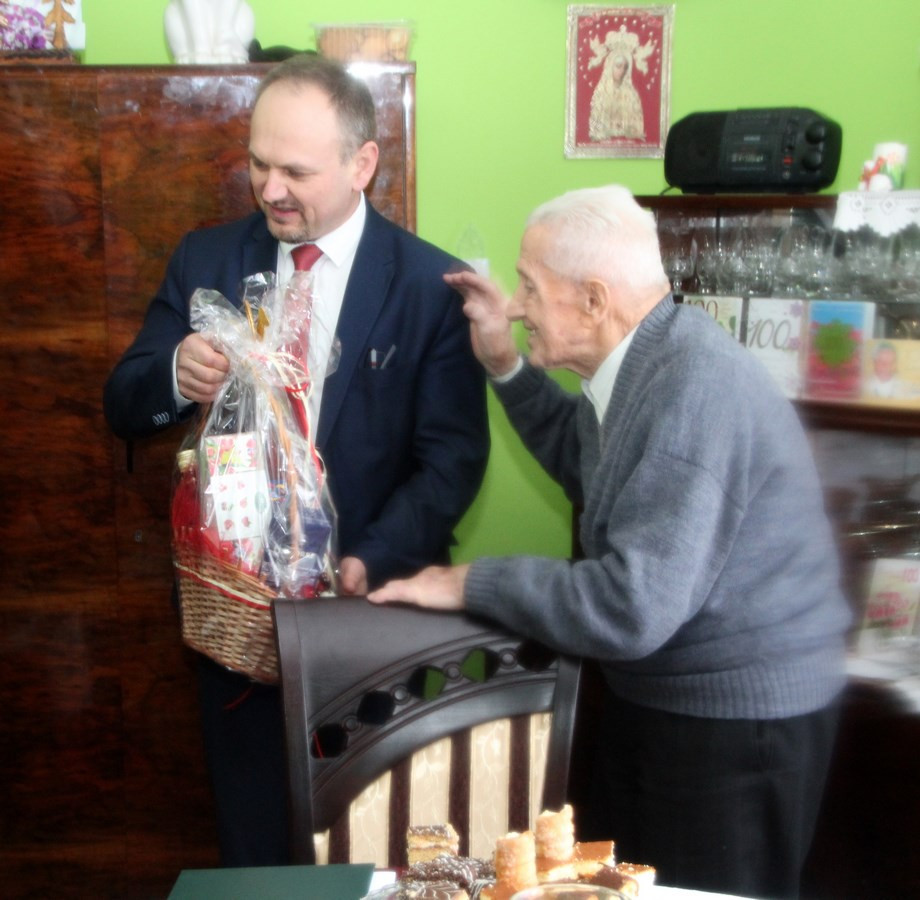 Pan Józef otrzymał z rąk gości list gratulacyjny, kwiaty i okolicznościowe upominki. Były życzenia i wiele wzruszających wspomnień . Uśmiech, pogoda ducha oraz życie w zgodzie z innymi - to recepta na długowieczność, jaką przekazał nam pan Józef. Z wiarą i optymizmem umówiliśmy się na kolejne spotkania.