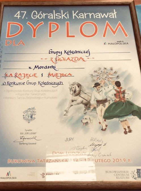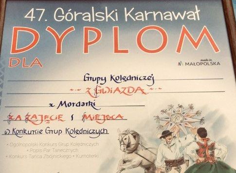 I miejsce i Złotą Rozetę Góralską zajęła Grupa Kolędnicza z Zespołu Regionalnego "Spod Kicek" z Mordarki podczas Ogólnopolskiego Konkursu Grup Kolędniczych, w ramach 47. Góralskiego Karnawału w Bukowinie Tatrzańskiej. Miejsce II i Srebrną Rozetę Góralską udało sie wywalczyć Grupie Kolędniczej Rodziny Mól ze Starej Wsi.