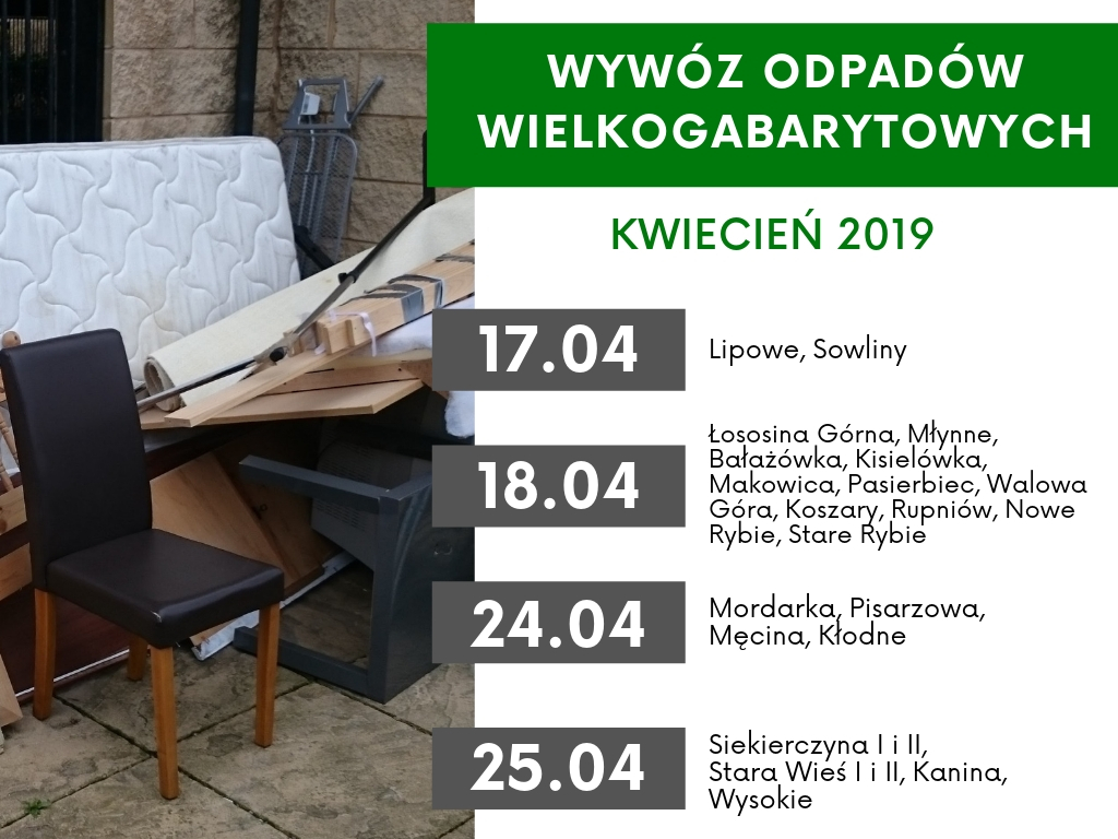 Harmonogram wywozu odpadów wielkogabarytowych - kwiecień 2019
