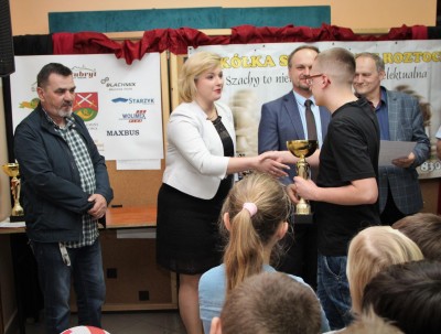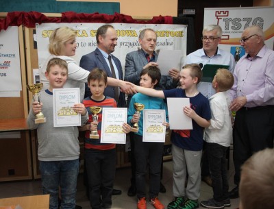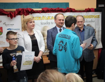 Podsumowania turnieju i wręczenia nagród najlepszym zawodnikom dokonali Wójt Gminy Limanowa Jan Skrzekut, Radna Gminy Limanowa Iwona Wojak – Ćwik oraz Dyrektor Szkoły Podstawowej nr 2 w Starej Wsi Marek Twaróg.